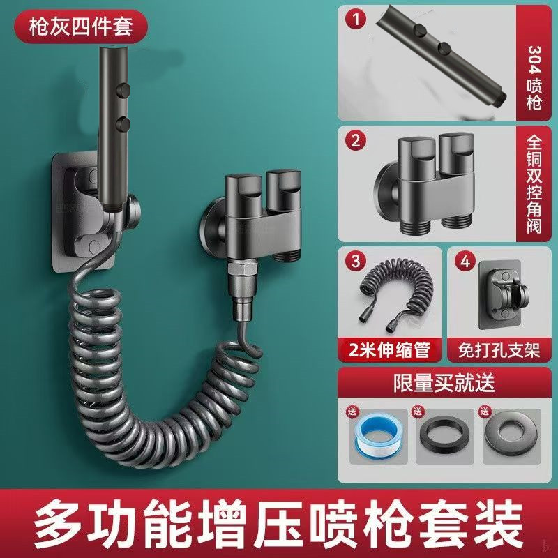 马桶伴侣喷枪一进二出增压设计带弹簧管