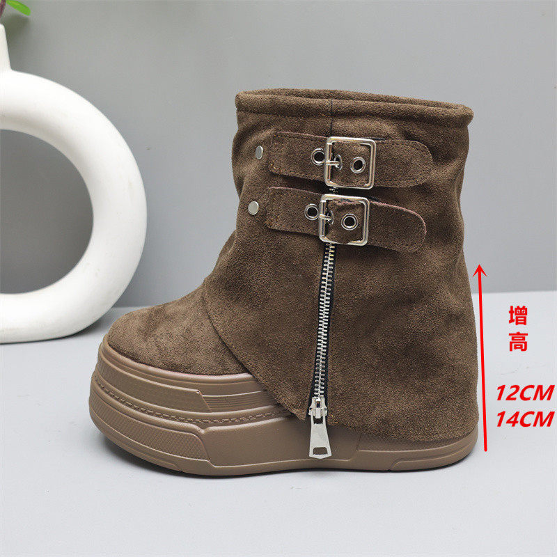 14公分小个子厚底增高马丁靴女短筒靴12cm小个子堆堆裤管靴子短靴