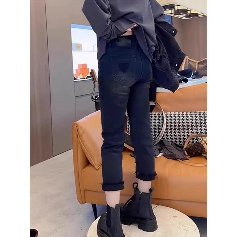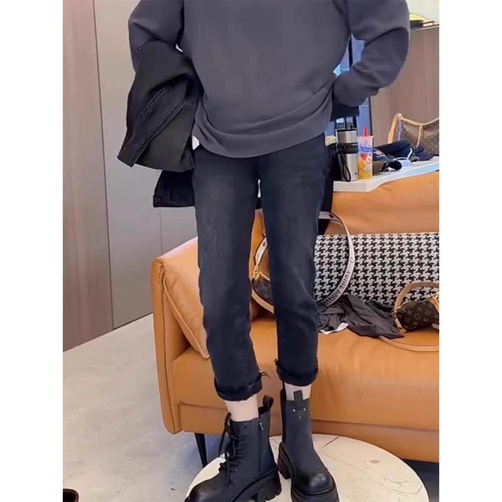 大码2025年秋季新款高腰弹力直筒牛仔裤女胖mm修身显瘦九分烟管裤