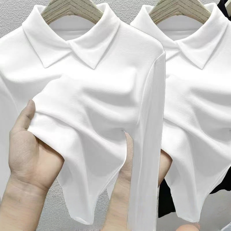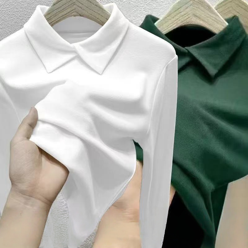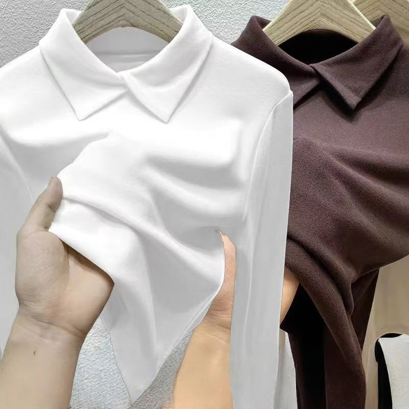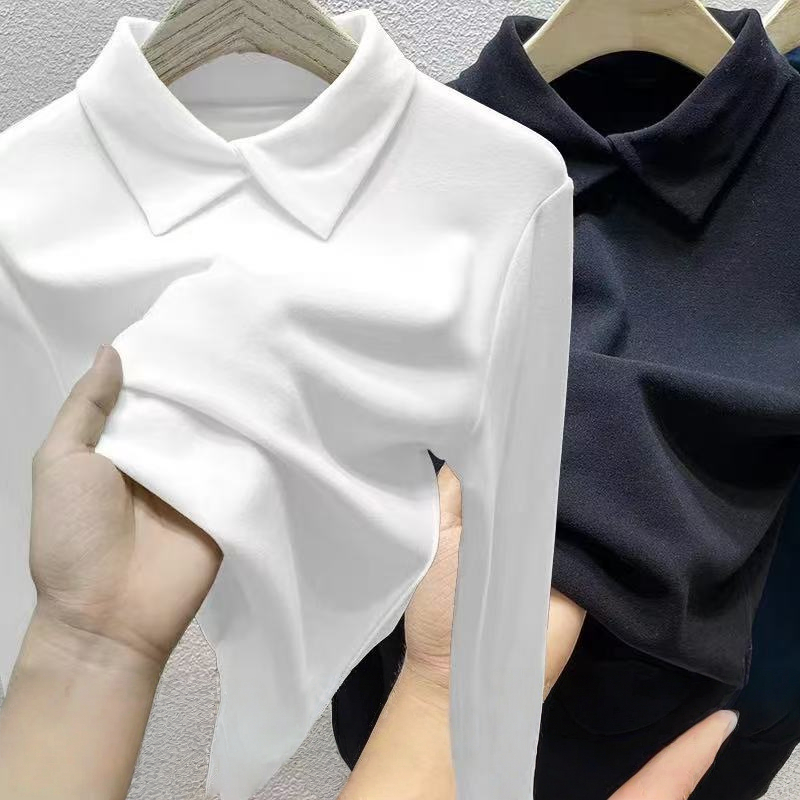 单/两件装 双面德绒Polo领长袖t恤女秋冬修身内搭打底衫保暖上衣