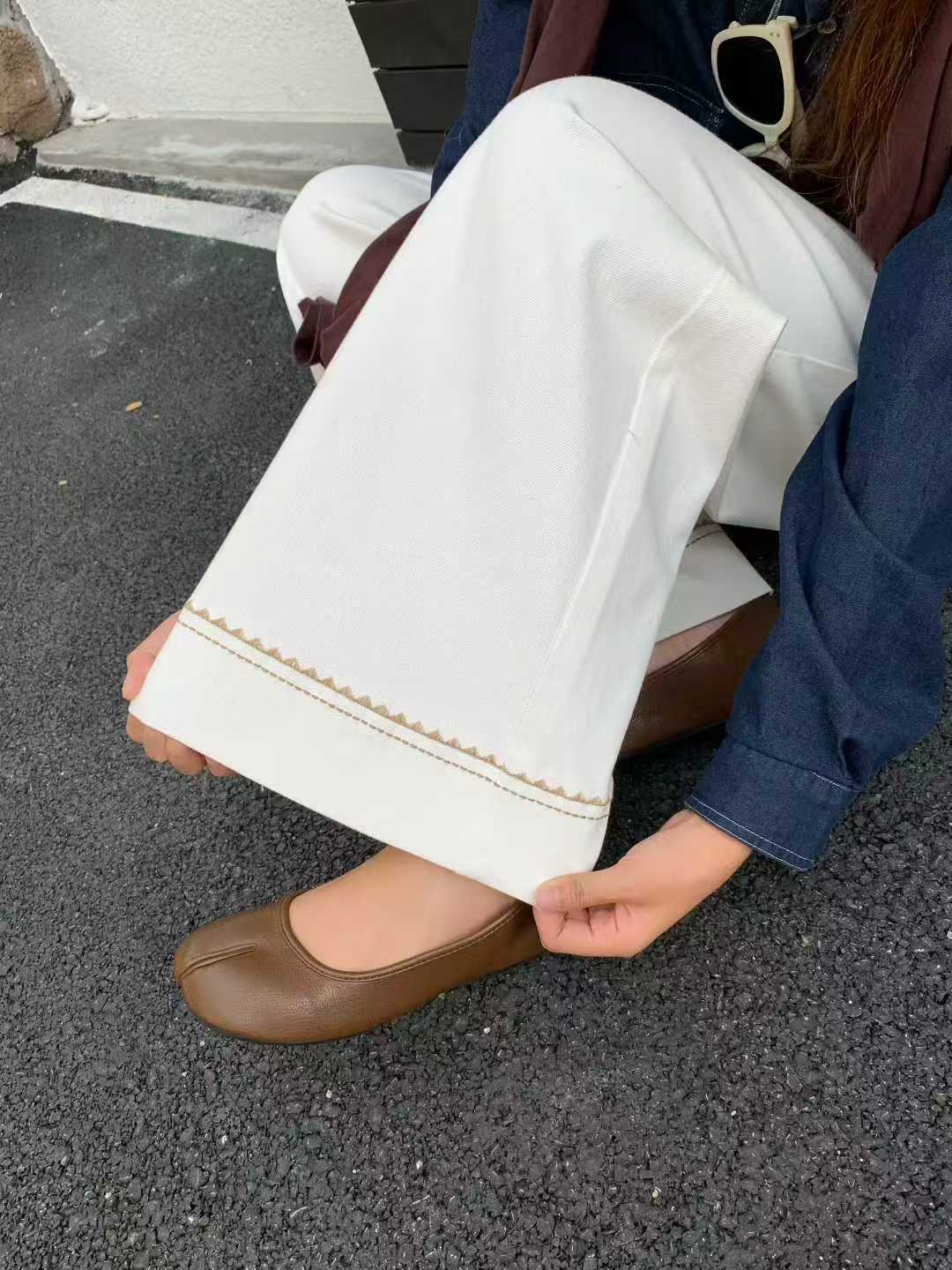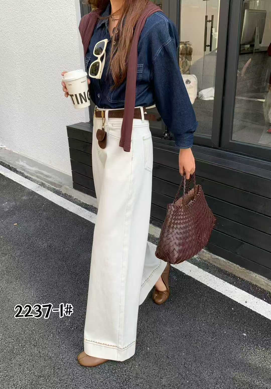 莉娜公主2237-1秋季白蓝牛仔直筒裤女百搭宽松韩系简约长裤休闲裤