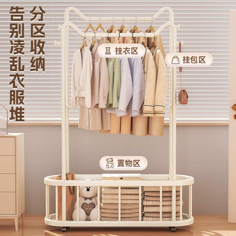 全新处理 落地衣架立式挂衣架带轮可移阳台客厅晾衣架置物架