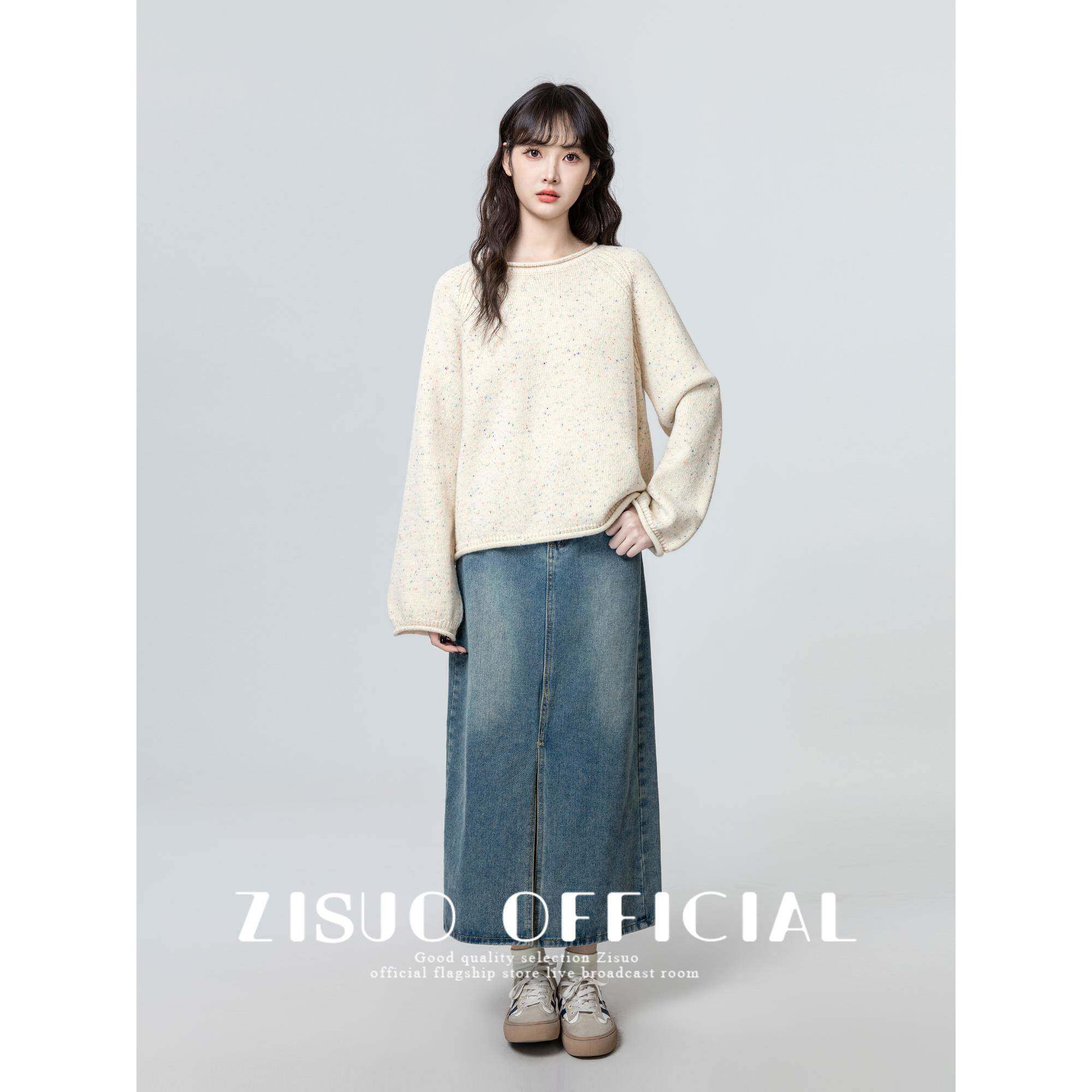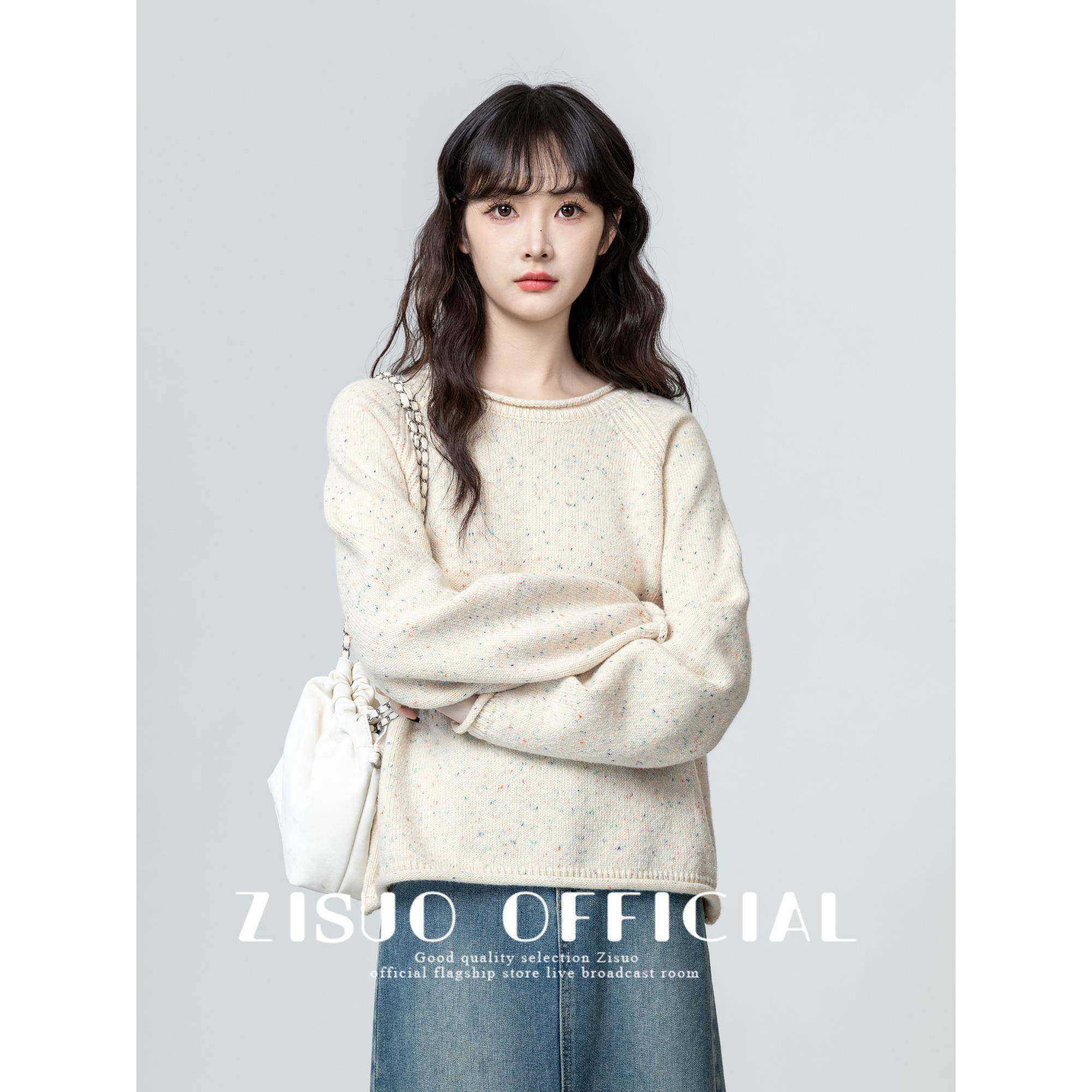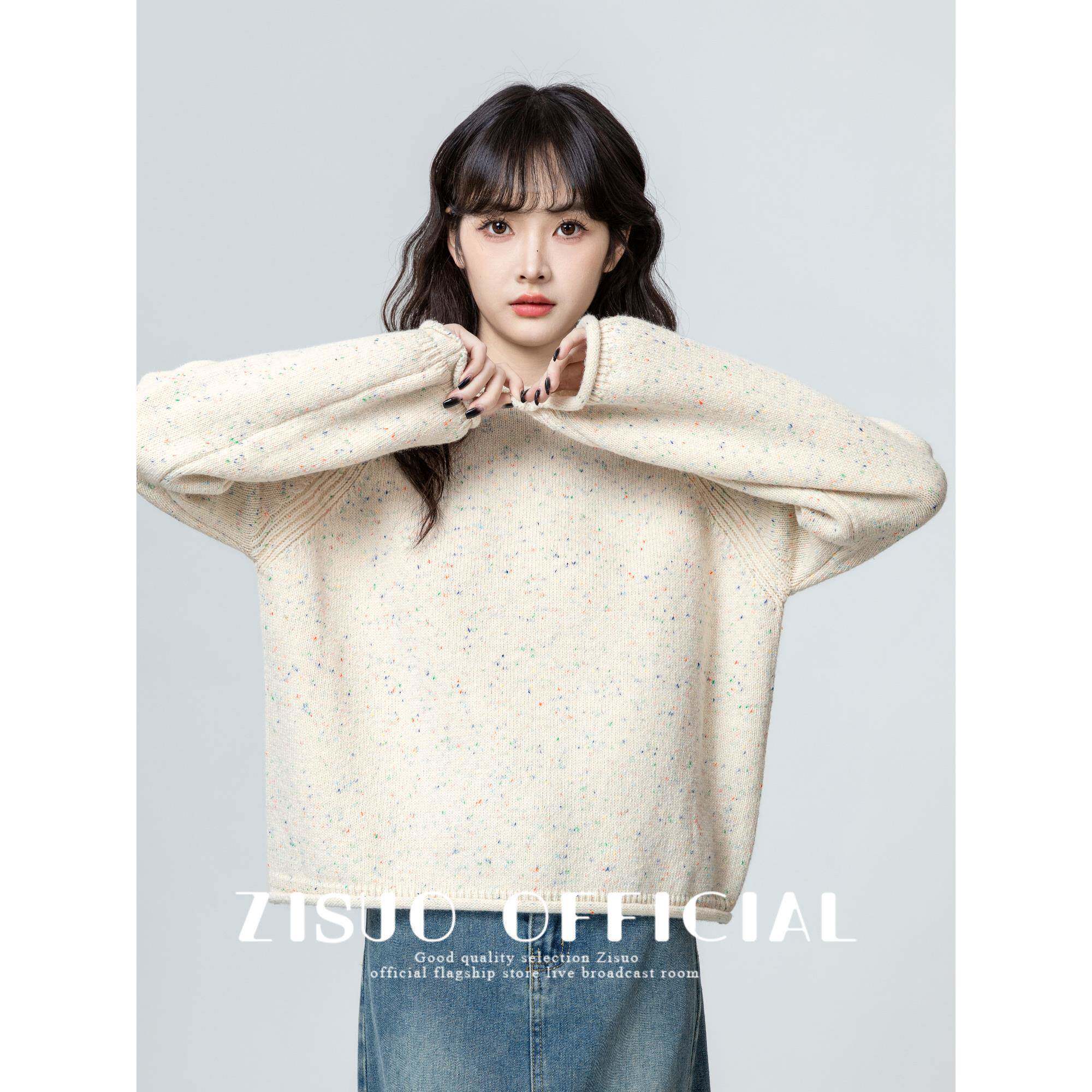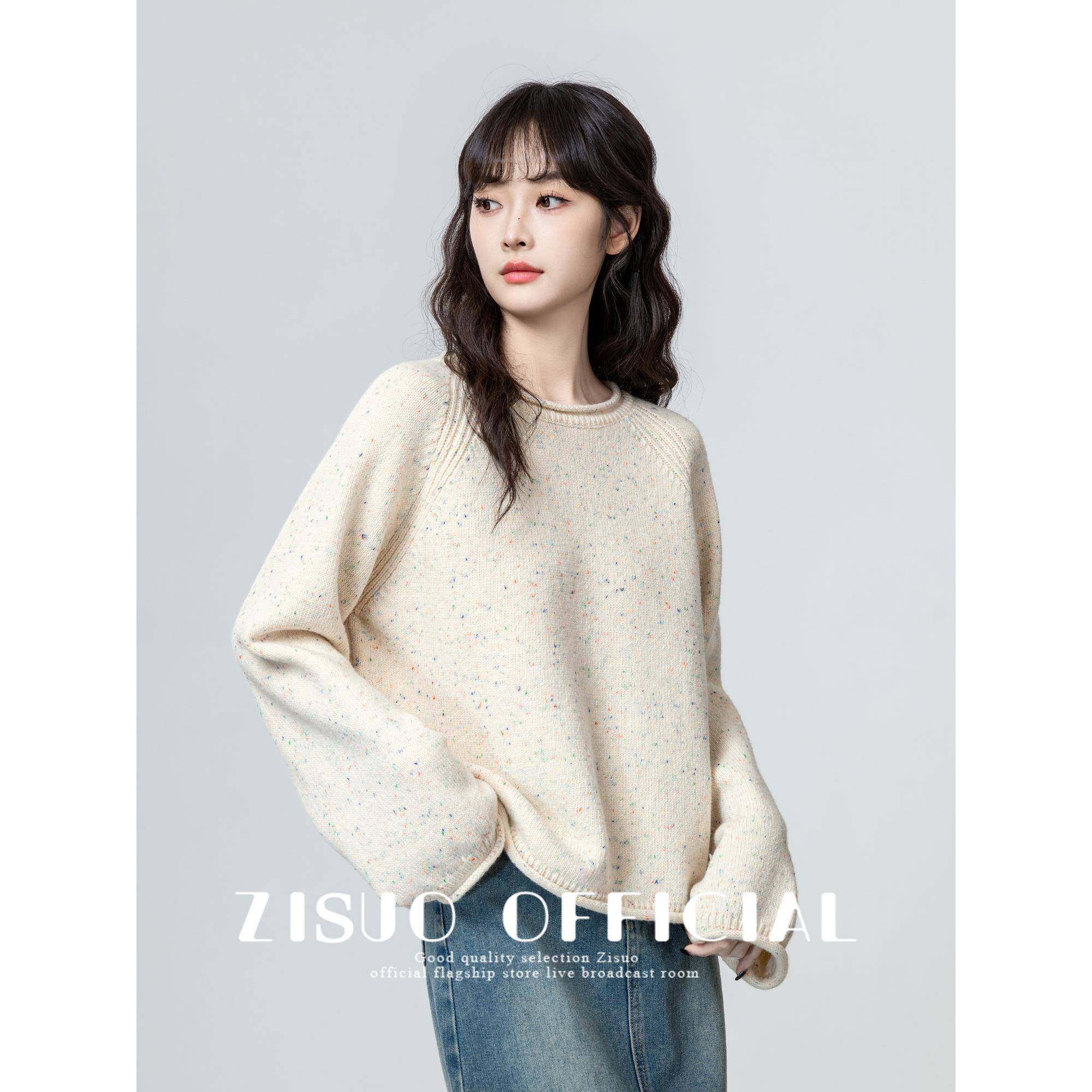 覆古圆领加厚针织女装2025秋冬新款宽松慵懒风格软糯套头针织上衣