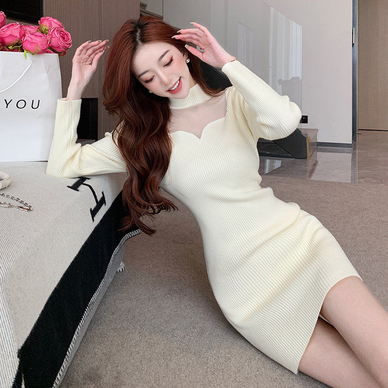 首页> 女装> 白色针织毛衣连衣裙女秋装冬2025新款大衣内搭打底高级修身包臀裙