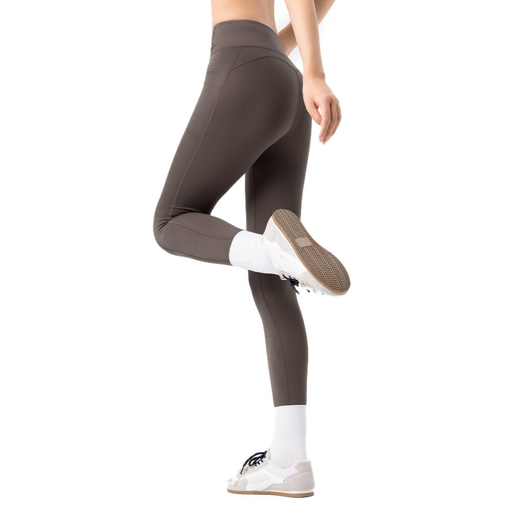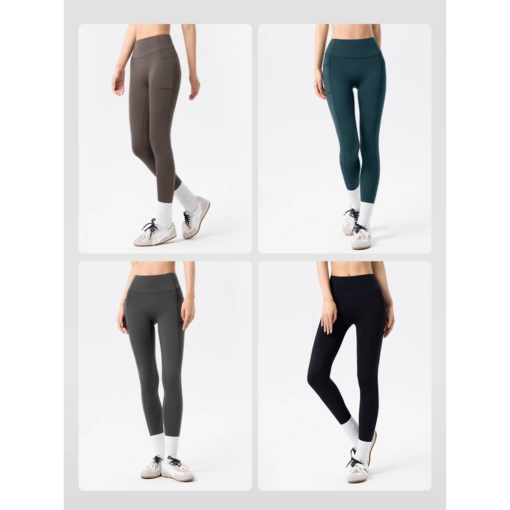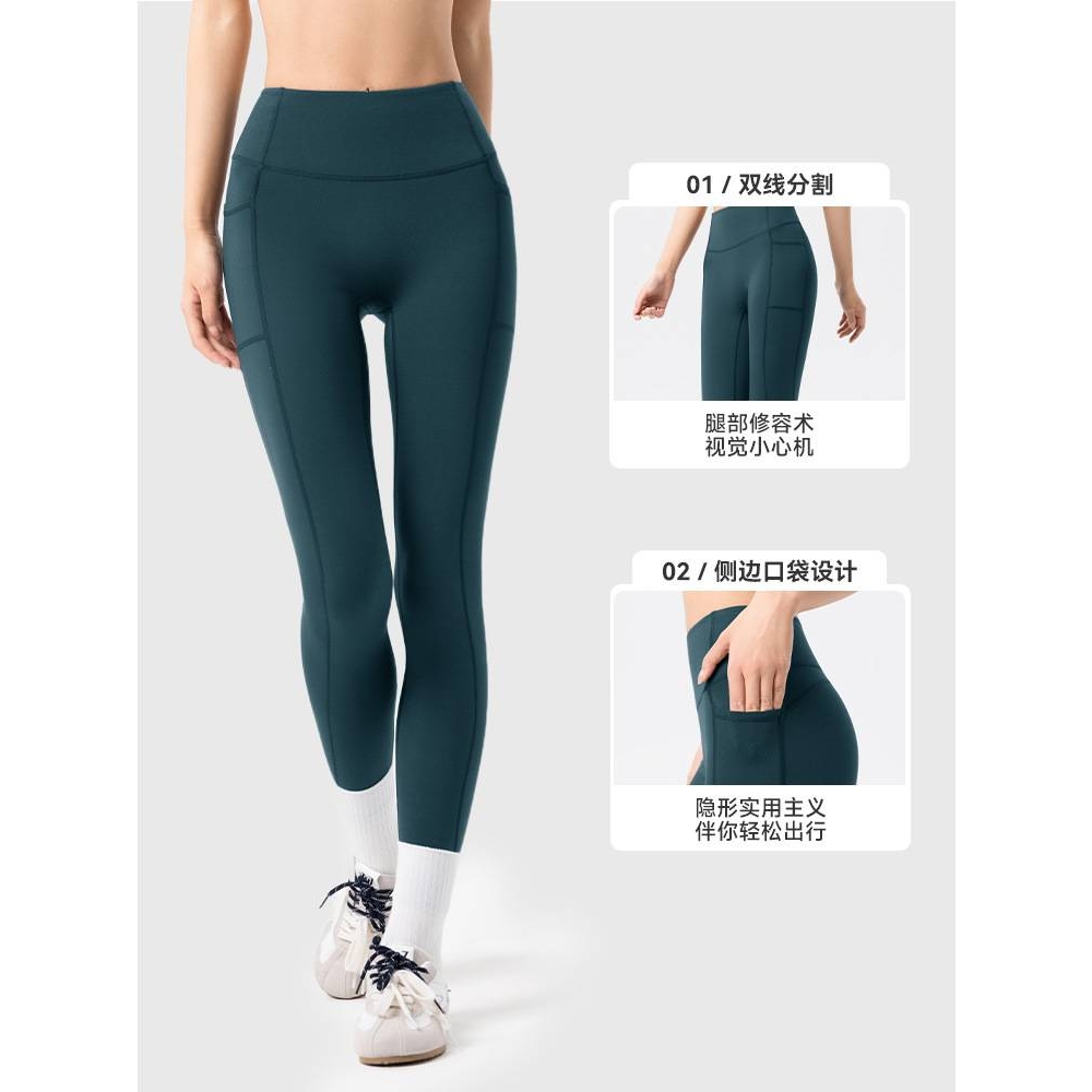 加绒瑜伽裤女秋冬带侧边口袋蜜桃提臀高腰收腹裤薄绒保暖健身长裤