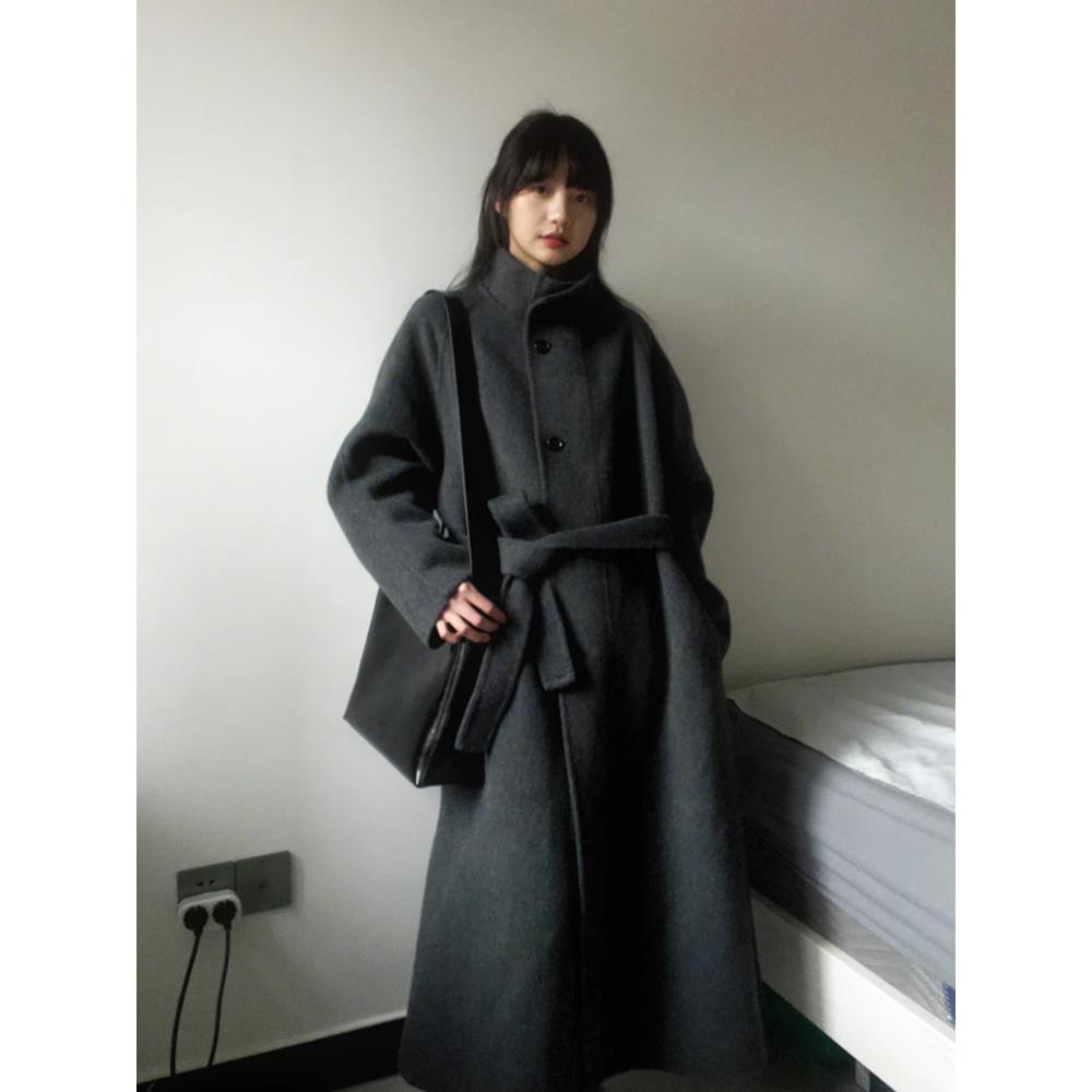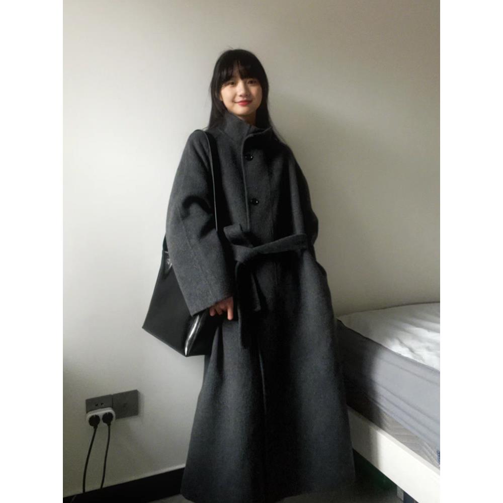 灰色高级感呢子大衣女2024年秋冬季新款毛呢外套小个子韩系中长款