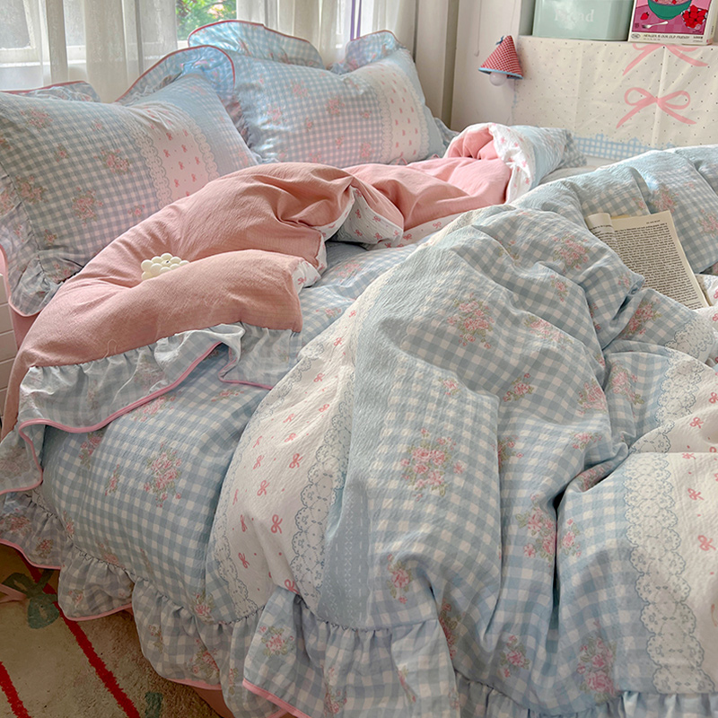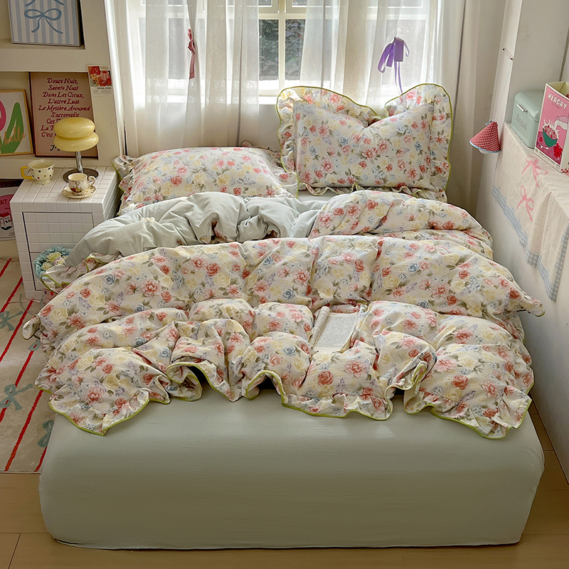 《小雀斑专属》亲肤舒适木棉皱皱纱花边四件套