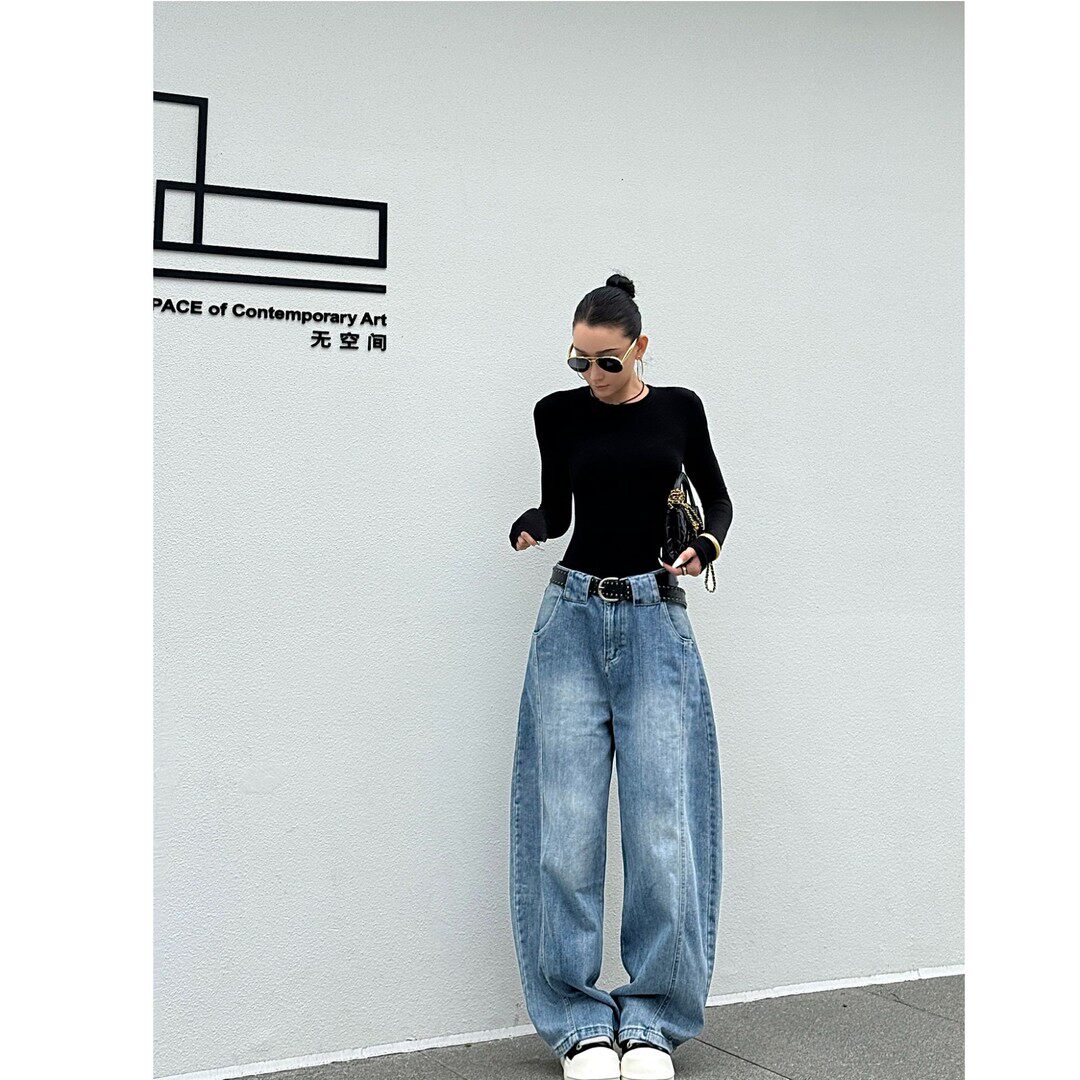 美式阔腿新款镰刀宽松弯刀牛仔裤女2025新款休闲香蕉长裤牛仔裤女