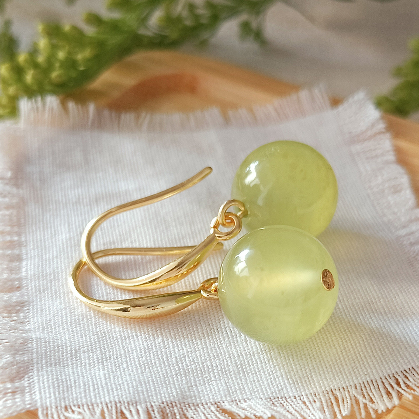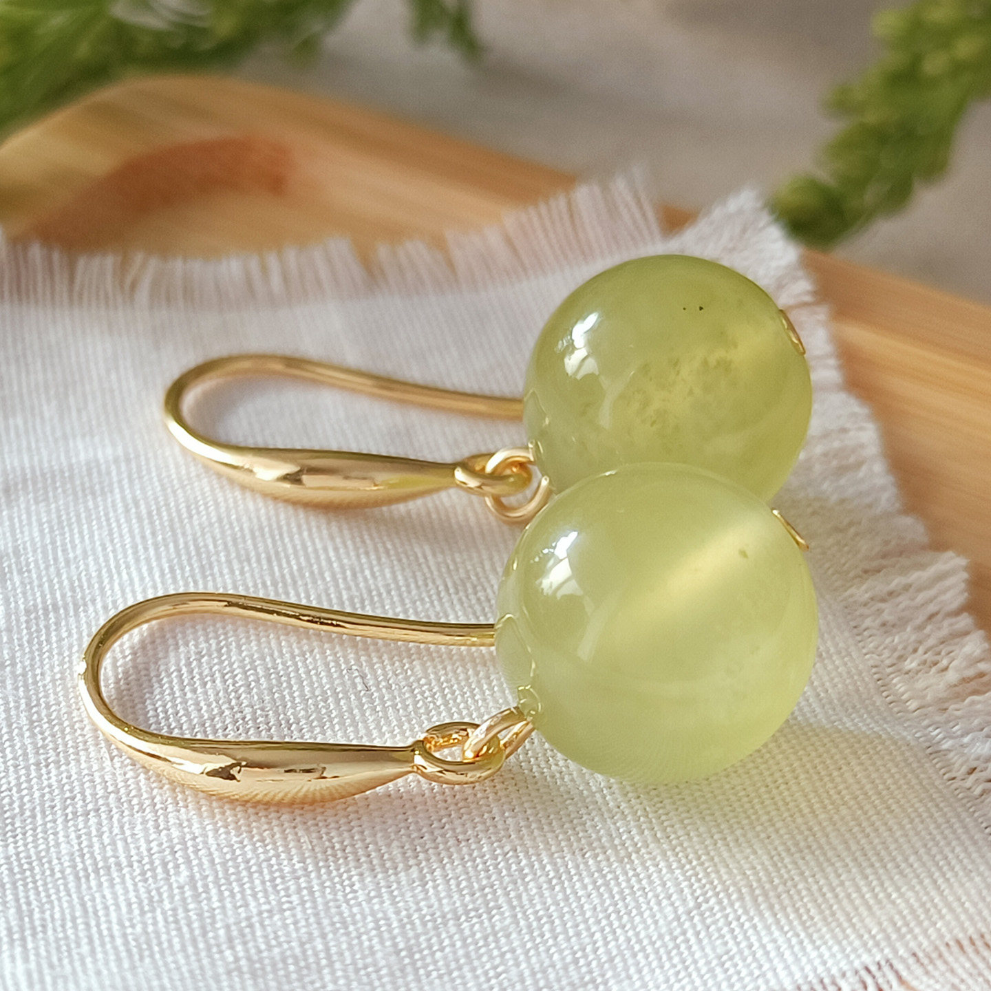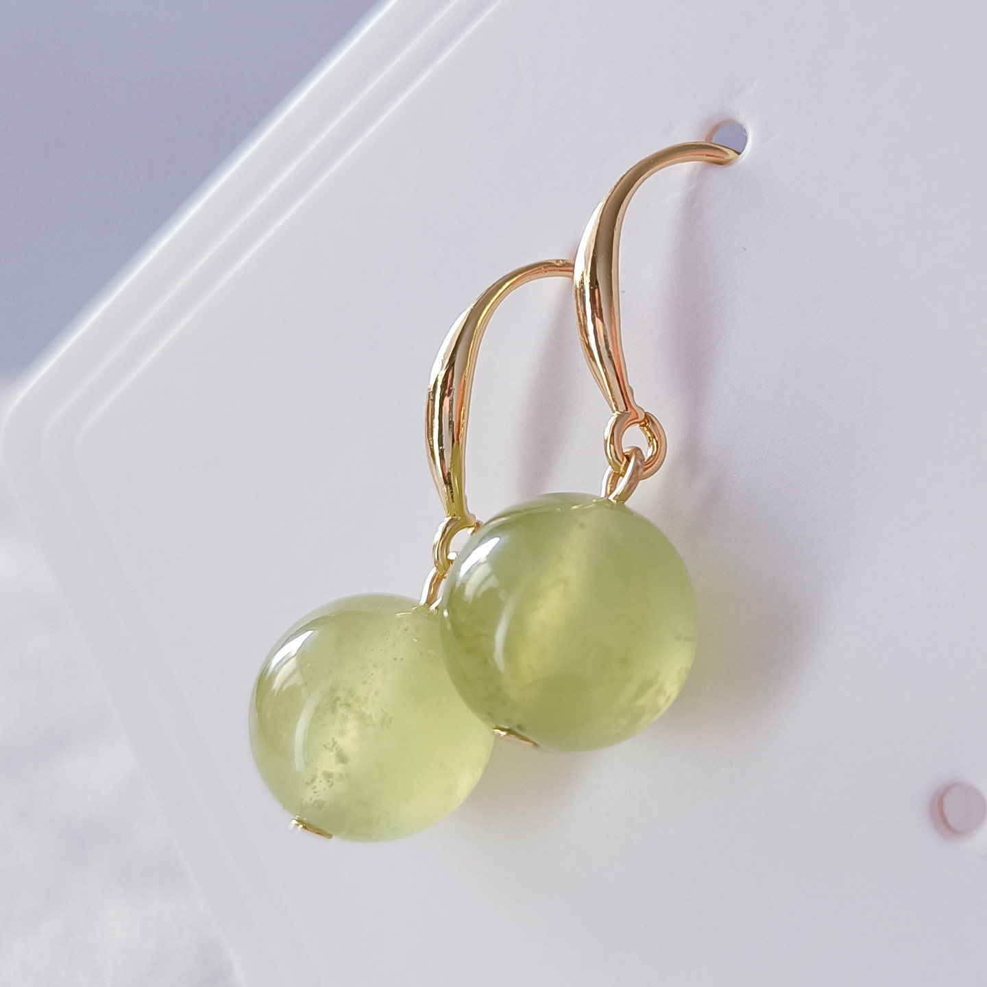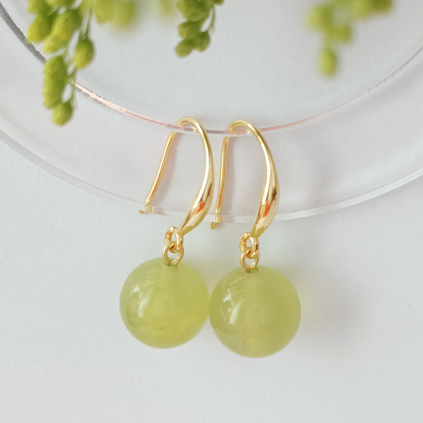 天然岫玉耳坠小清新耳坠天然玉石耳环饰品绿色耳环饰品高档礼物