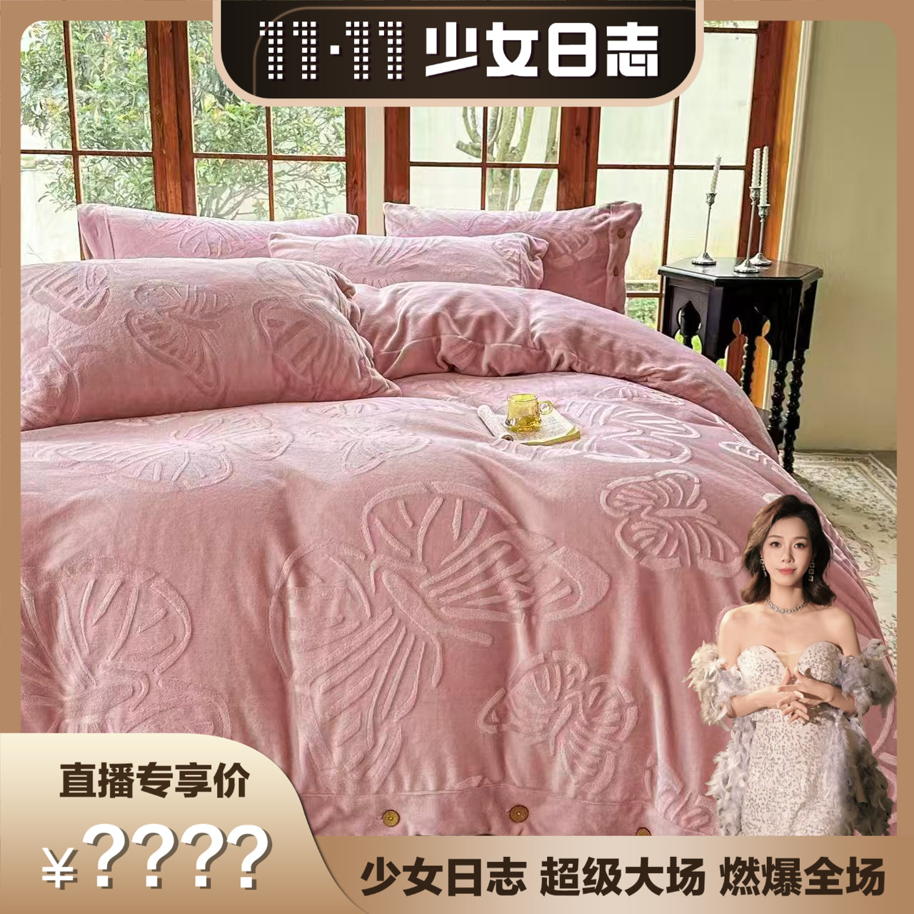 【双十一宠粉节】无印秋冬季加厚保暖雕花牛奶绒四件套!!11102