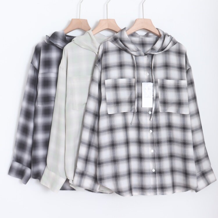 首页> 女装> D19062日单26年新款客供单排扣宽松显瘦慵懒好搭配女休闲连帽衬衫