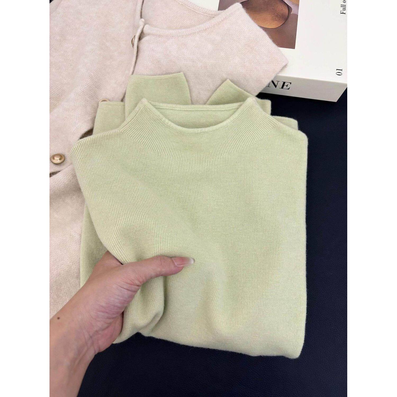 半高领绿色fufu针织衫打底女内搭秋冬季加厚长袖上衣2025打底衫女