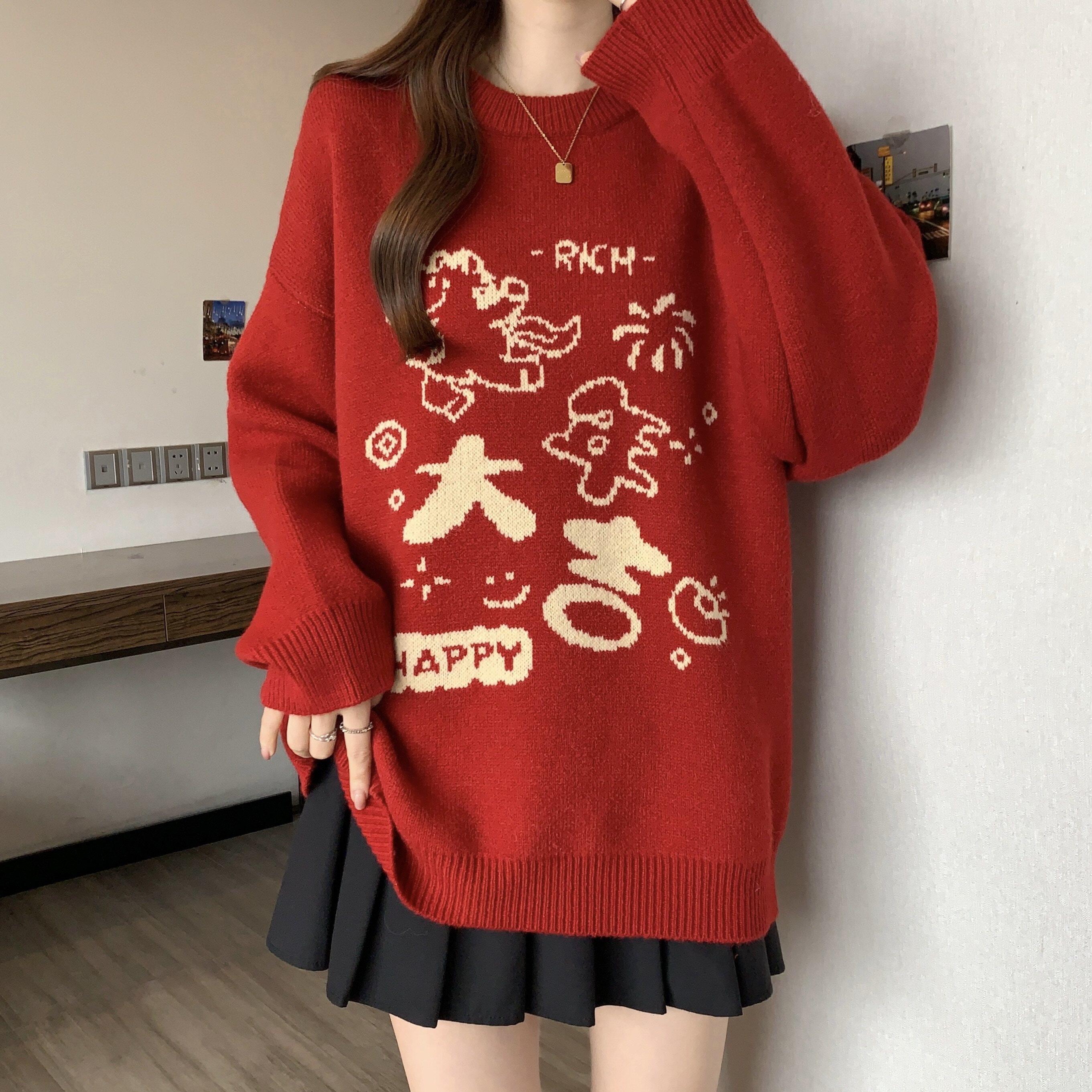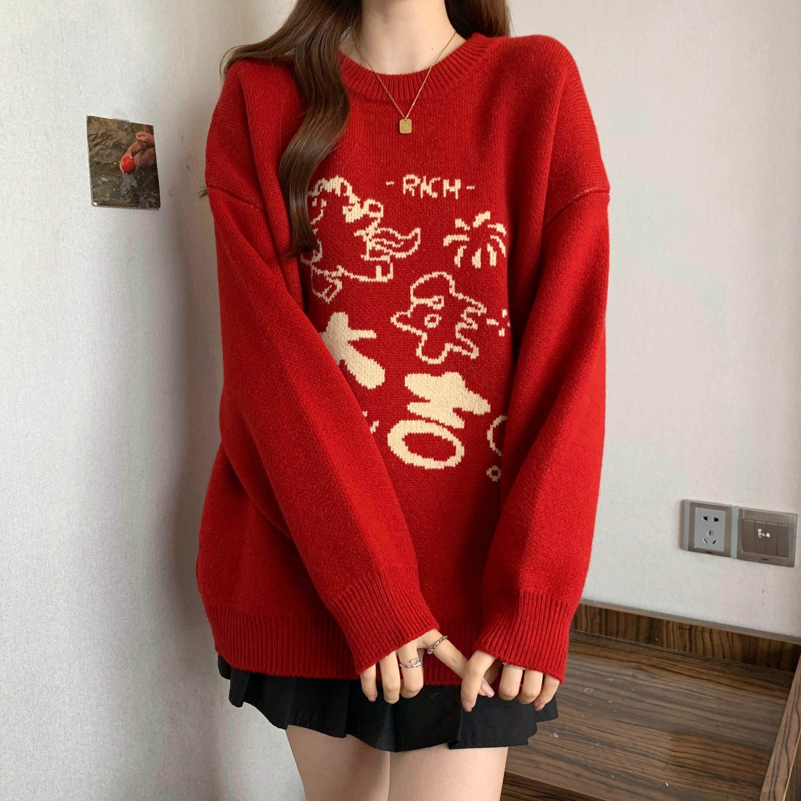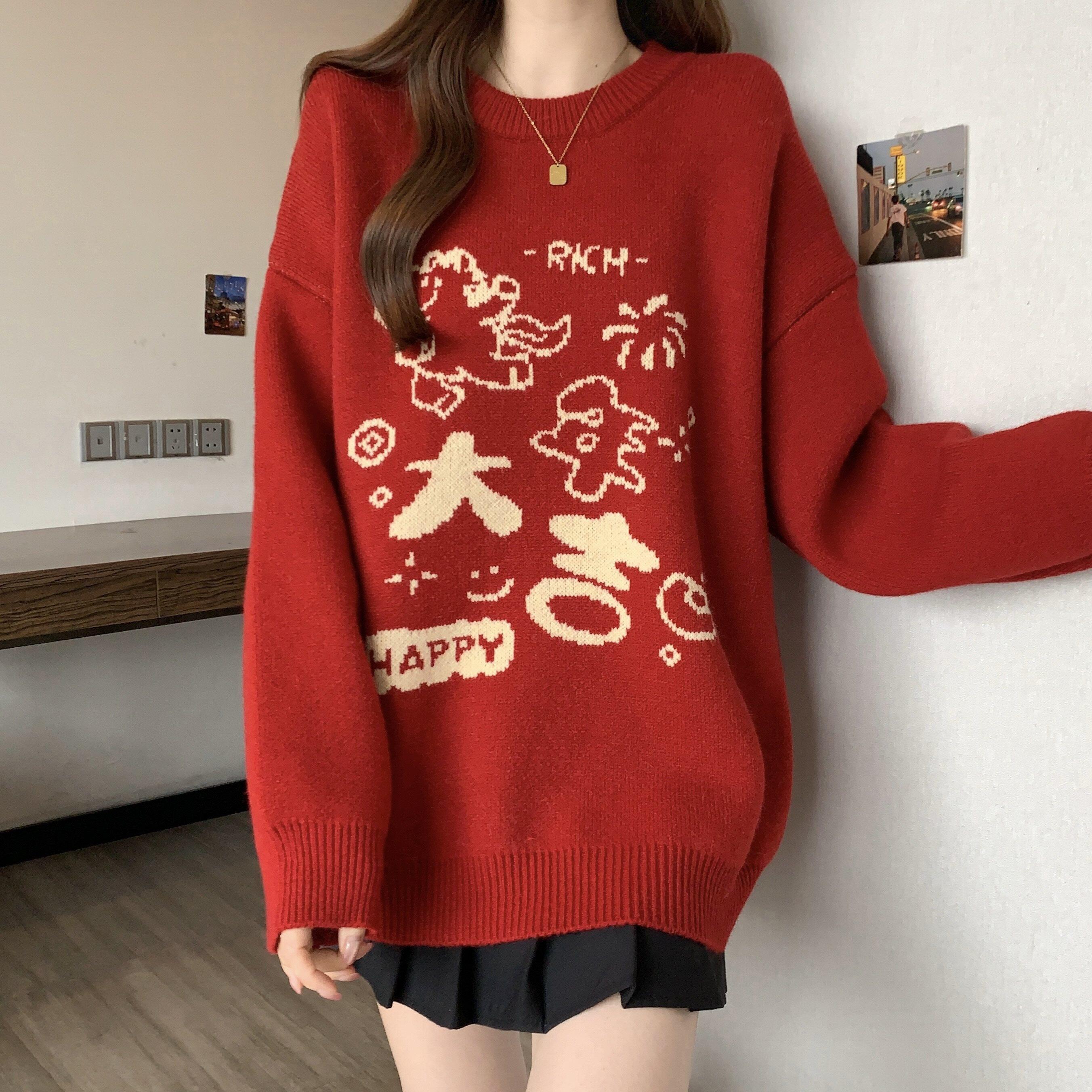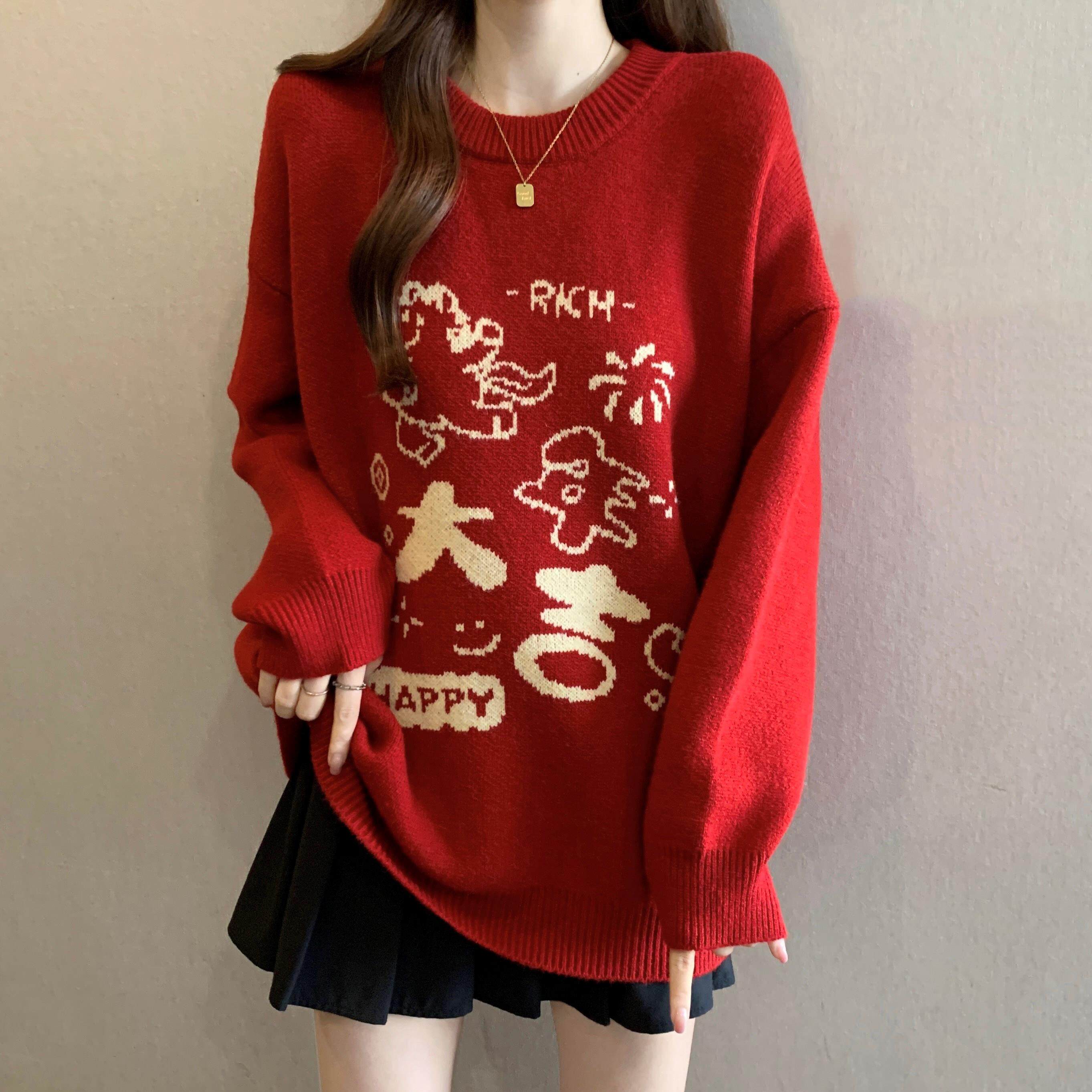 过年红色毛衣女2026马年本命年衣服新款秋冬大码胖mm针织毛衫上衣