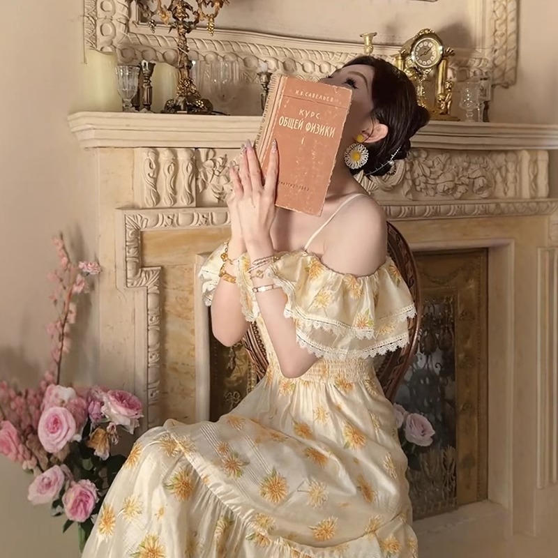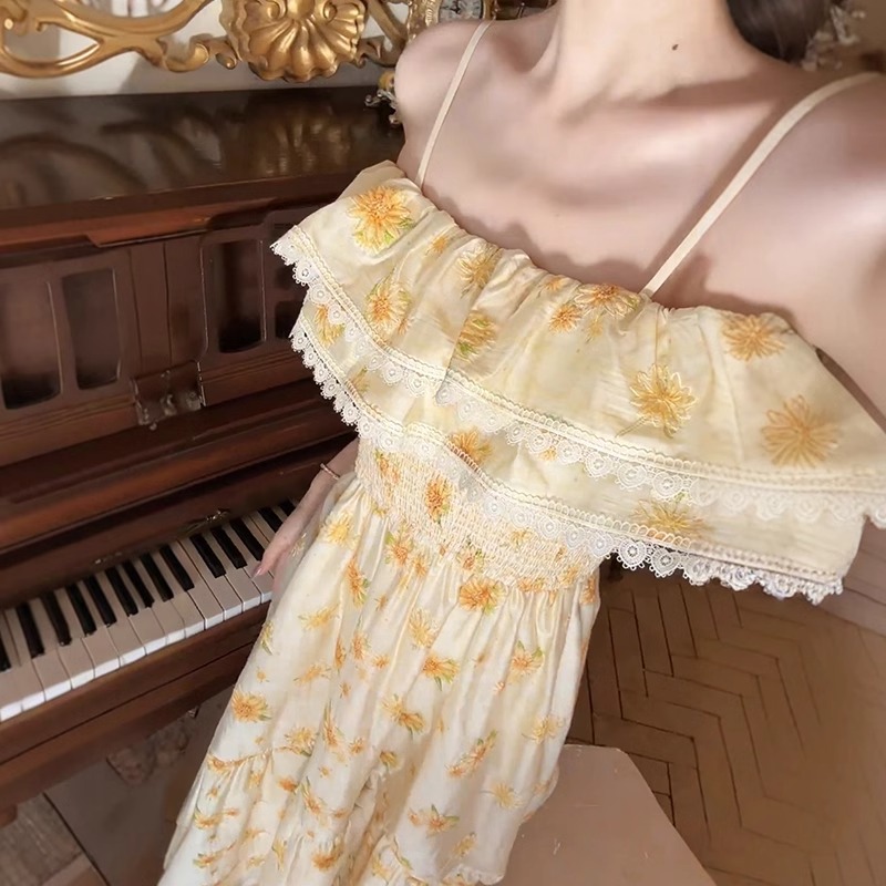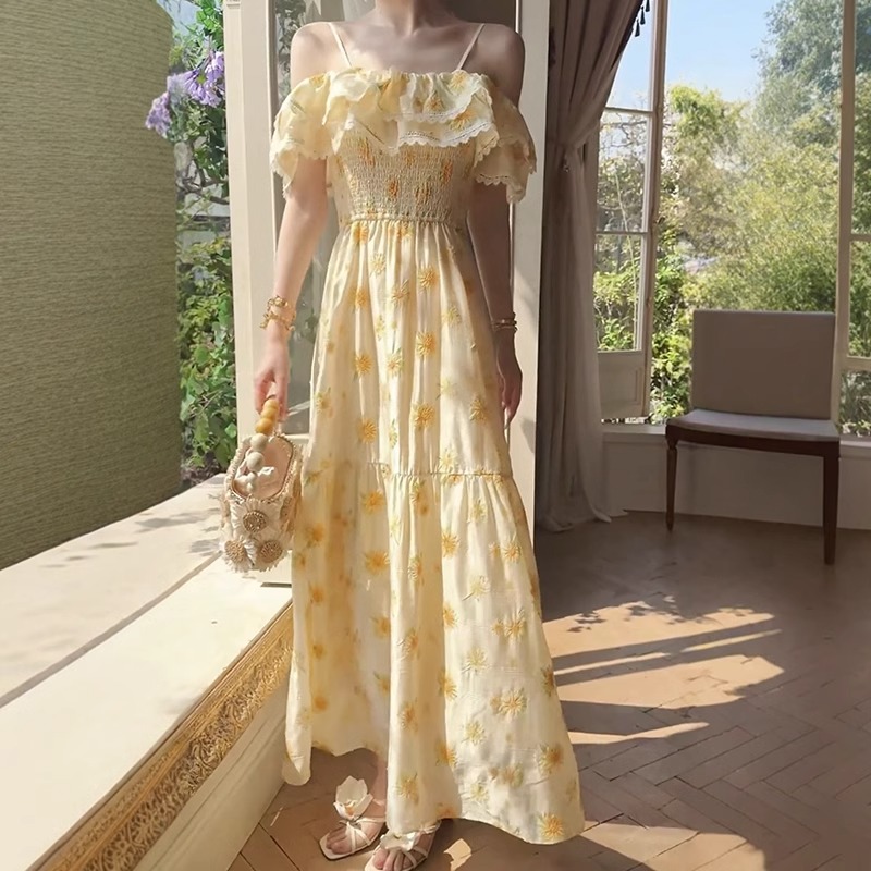 法式浅春系穿搭碎花吊带连衣裙女夏季新款设计感小众收腰显瘦长裙