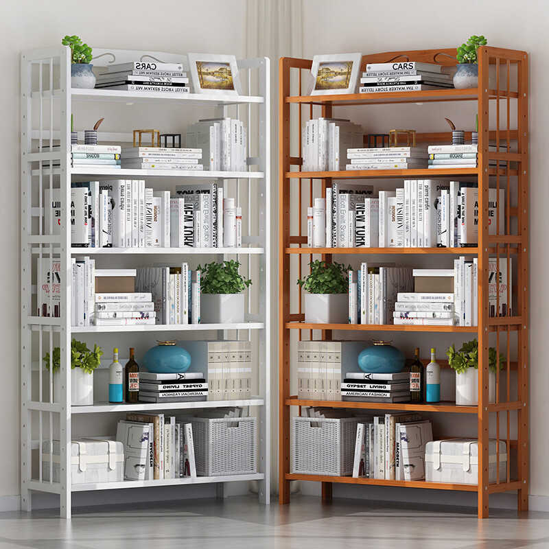 茶色书架家用书柜厨房收纳置物架客厅落地书架展示架木纹多层升降