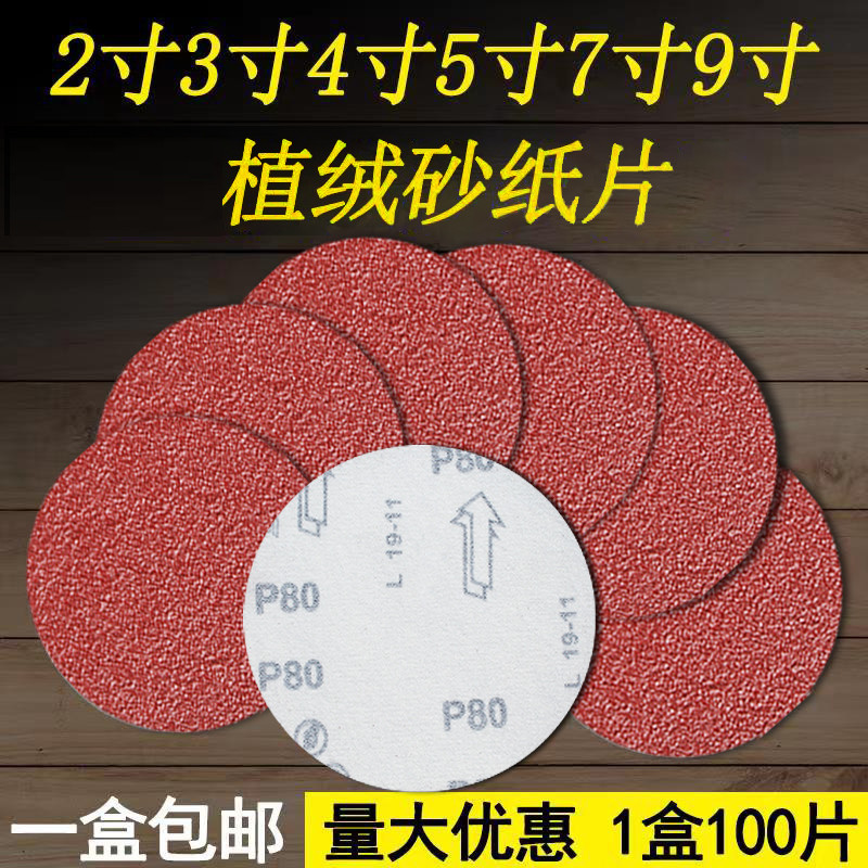 5寸植绒砂纸片4寸9寸打磨机圆形自粘沙纸圆盘气磨机抛光打磨砂纸