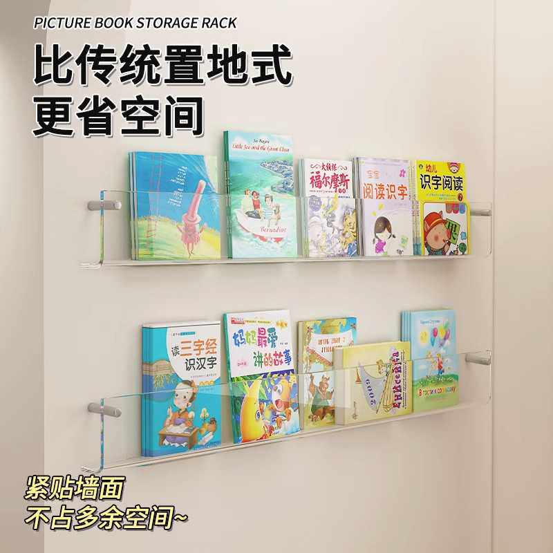 书架墙上置物架亚克力透明收纳儿童绘本门后挂壁装饰阅读展示架子