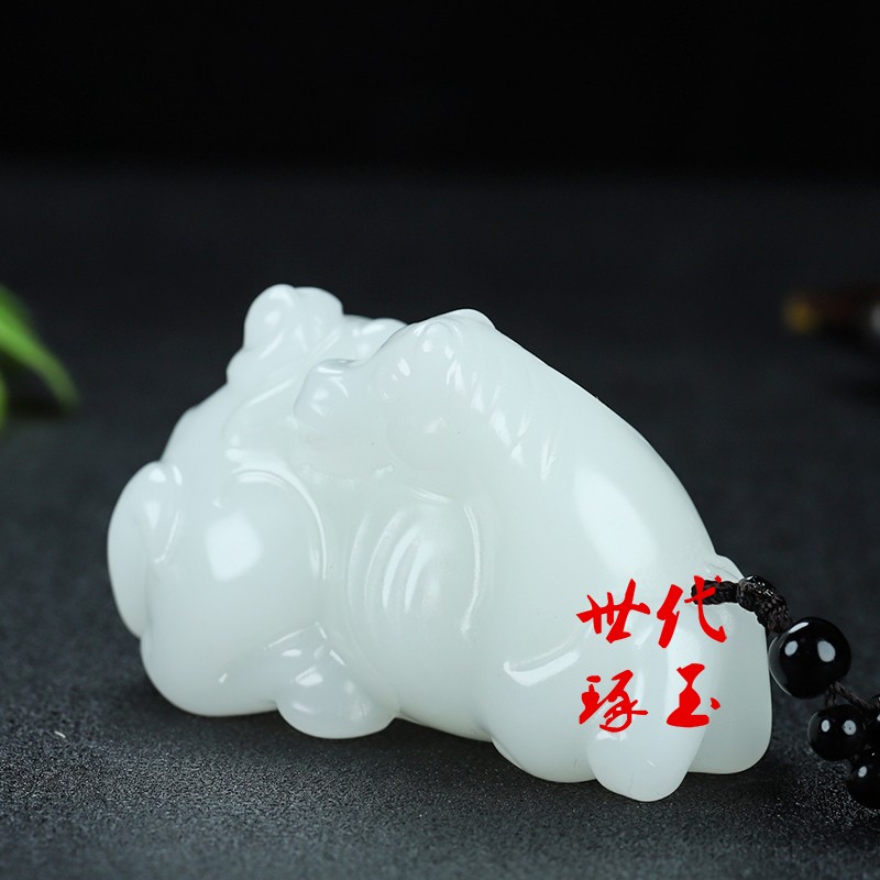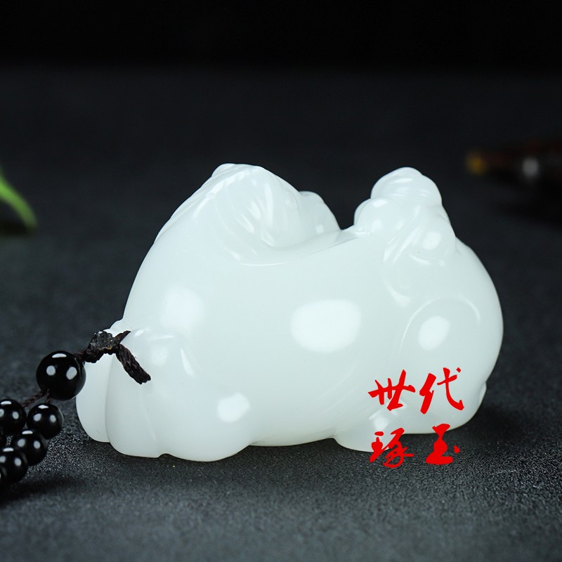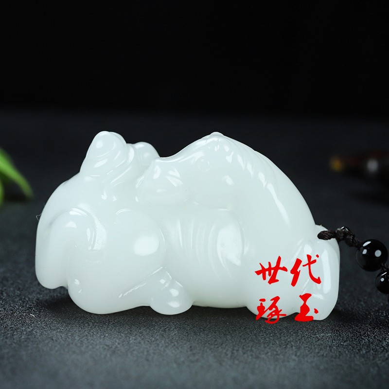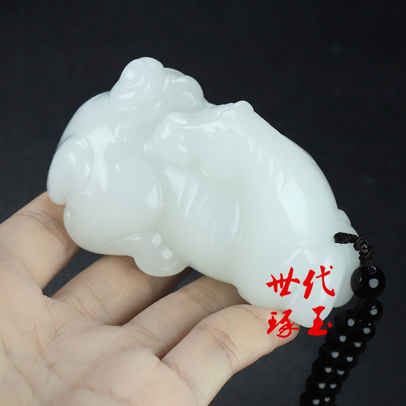 新疆玉马上封侯玉佩和田玉白玉玉马猴手把件羊脂玉马到成功把玩件