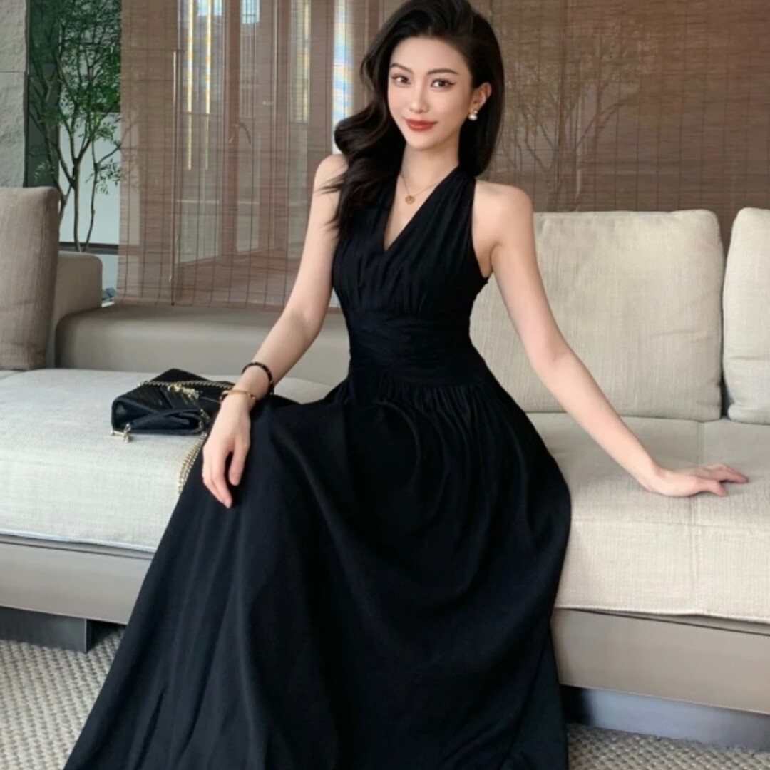 JIJINQI气质显瘦黑色连衣裙夏季新款时尚收腰小黑裙