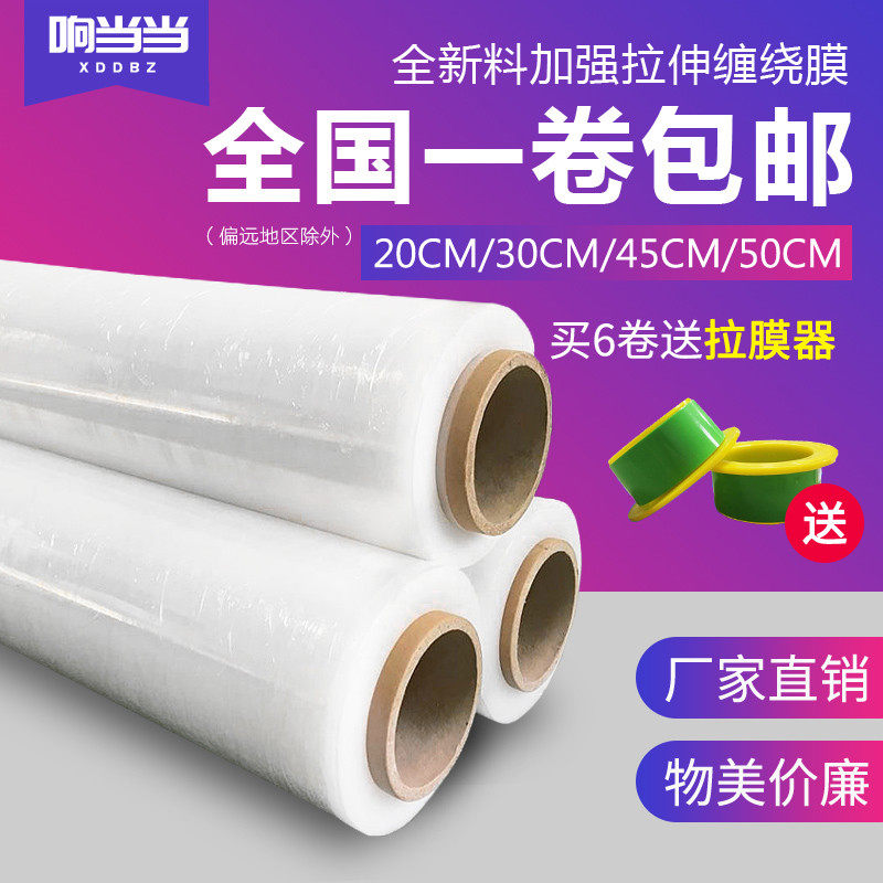 快递包装膜打包拉伸膜 高自粘pe物流缠绕膜 宽50cm大卷工业保鲜膜