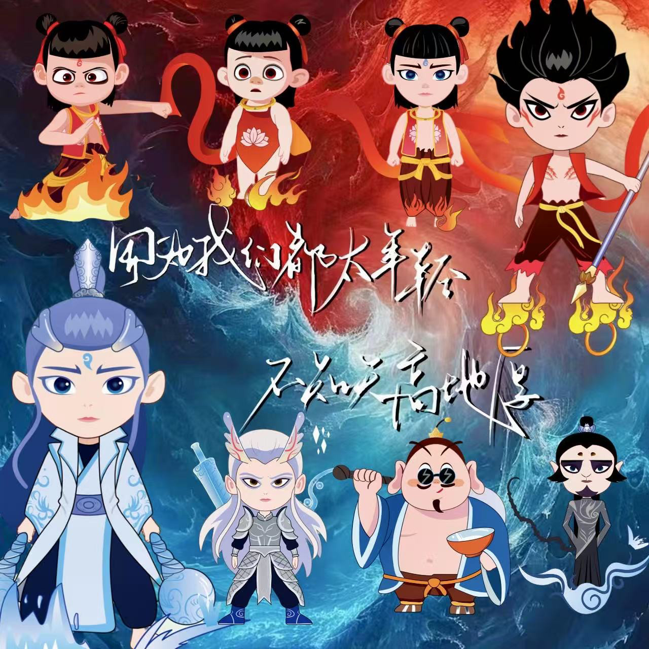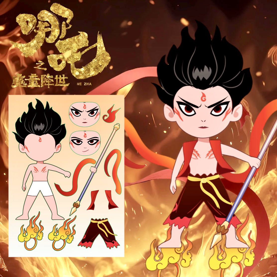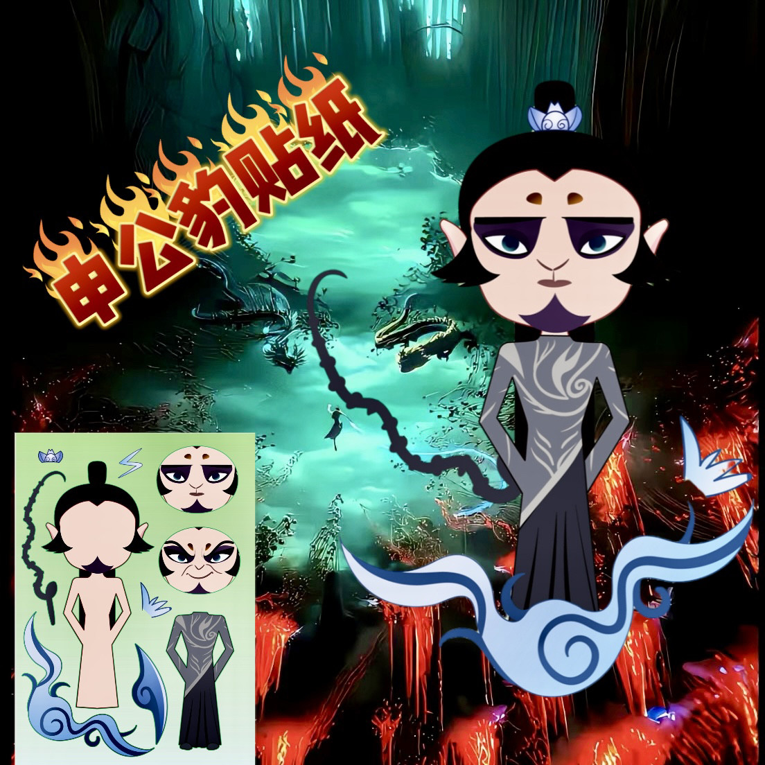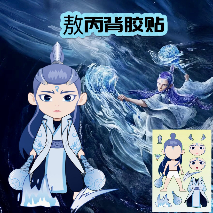 哪吒闹海敖丙太乙真人敖广申公豹换面贴纸diy儿童手工创意益智贴