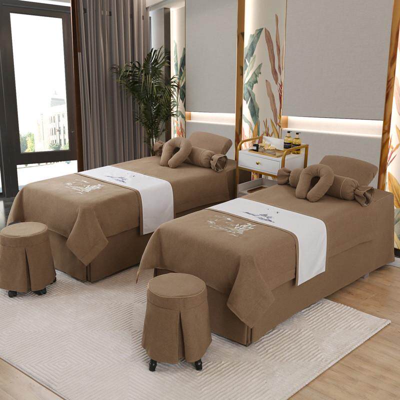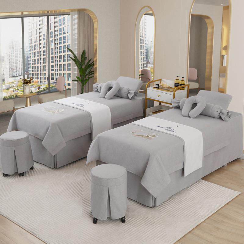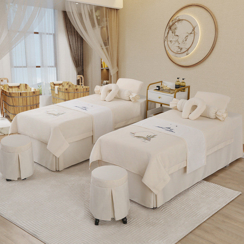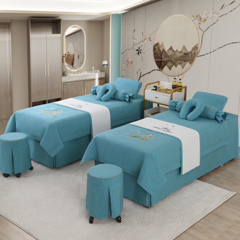 新款高档美容床罩四件套轻奢棉麻美容院采耳按摩理疗床单床套批发