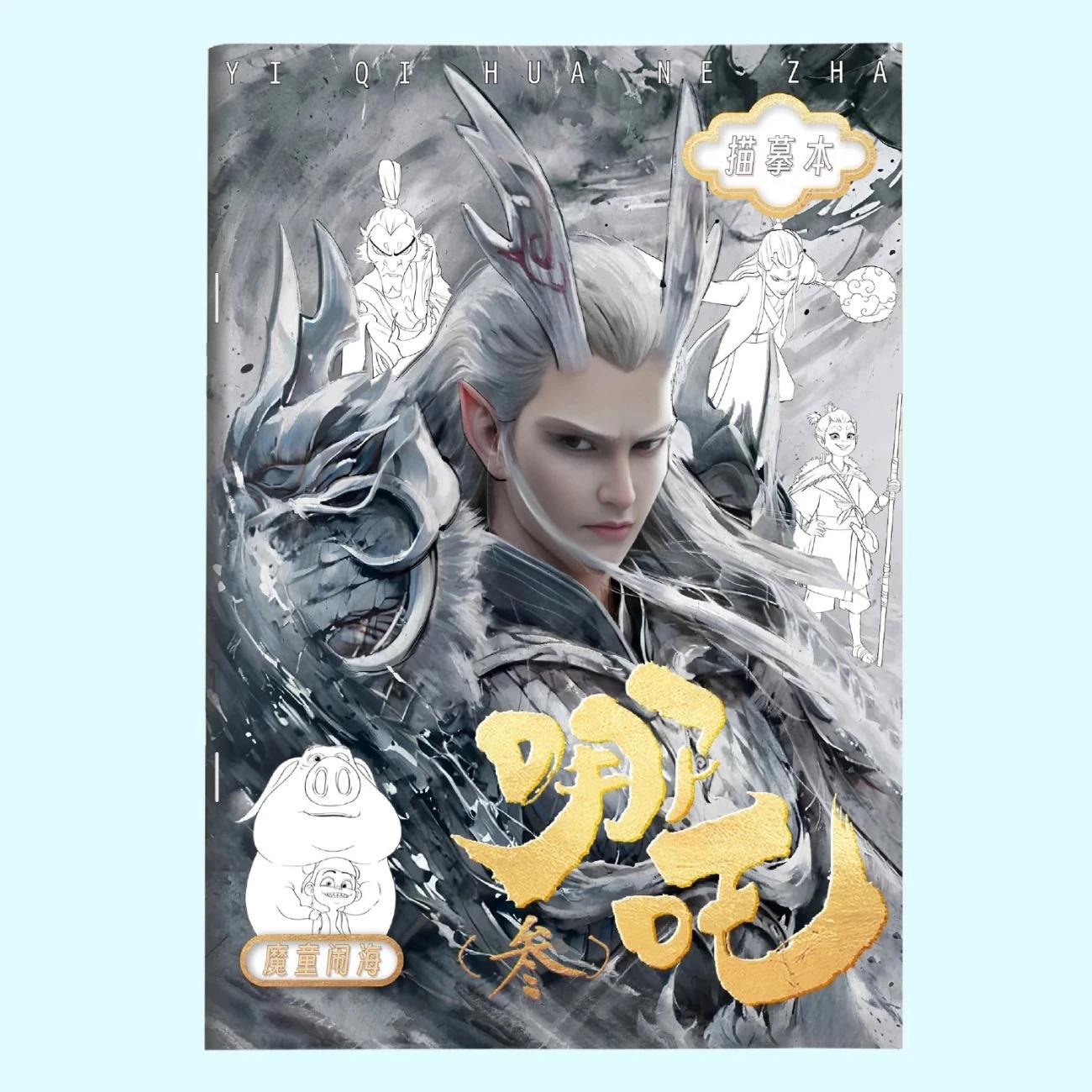 新款哪吒之魔童闹海周边描摹本儿童填色手绘涂鸦敖丙申公豹画画本