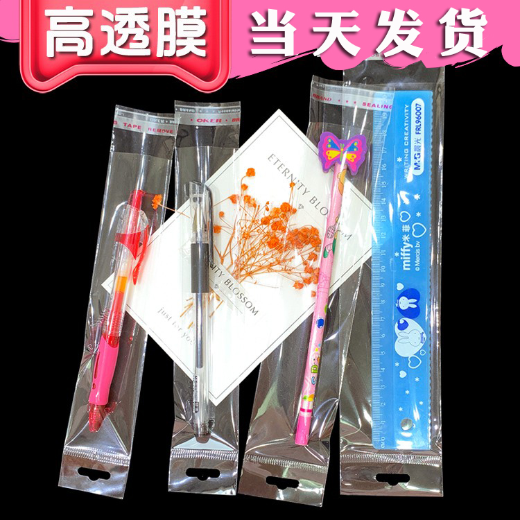 2b铅笔包装袋 中性笔文具塑料袋透明 薄膜袋opp黏自袋不干胶新款