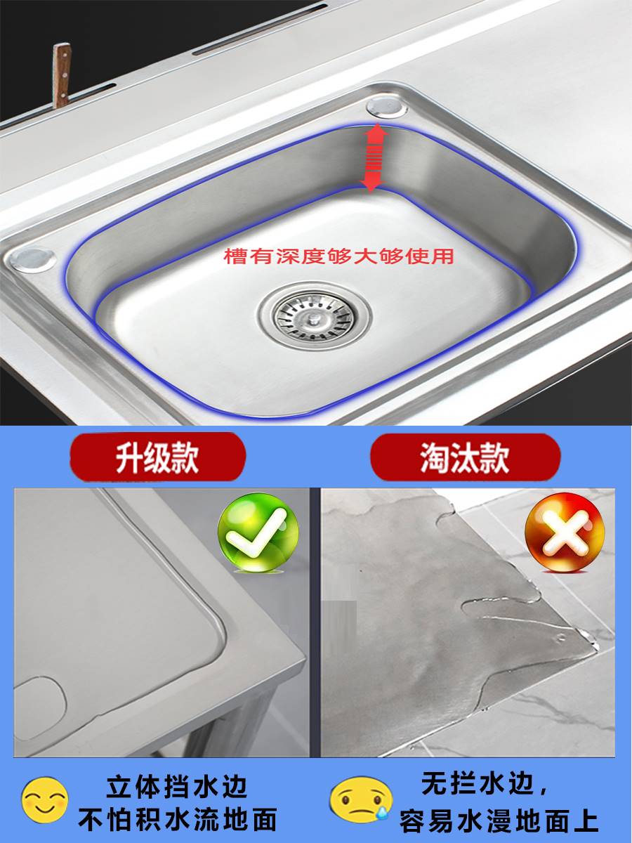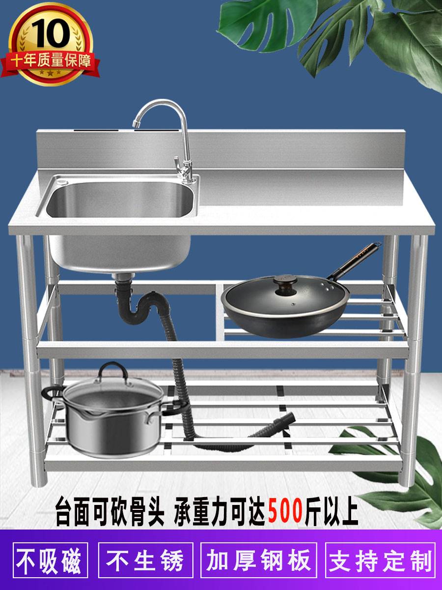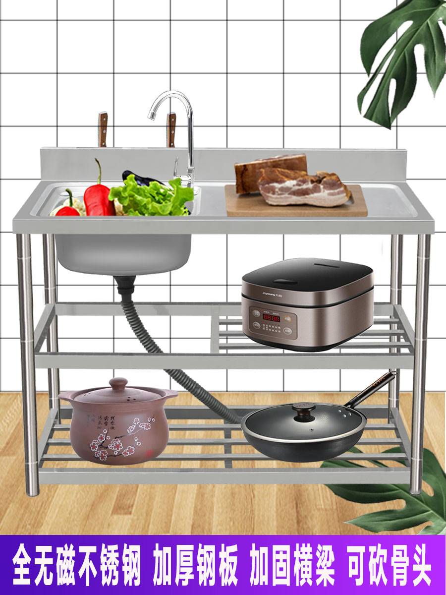 优质不锈钢水槽带支架工作台一体式成型单双厨房洗菜盆洗碗洗手池