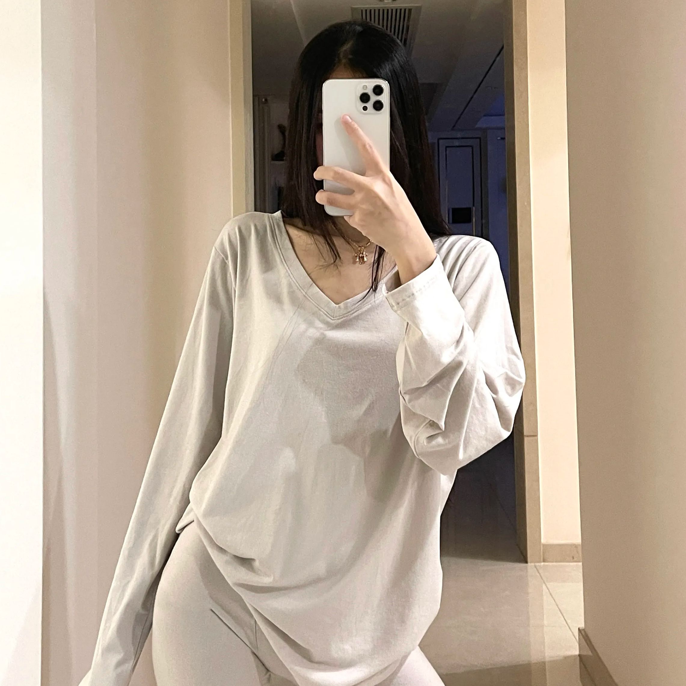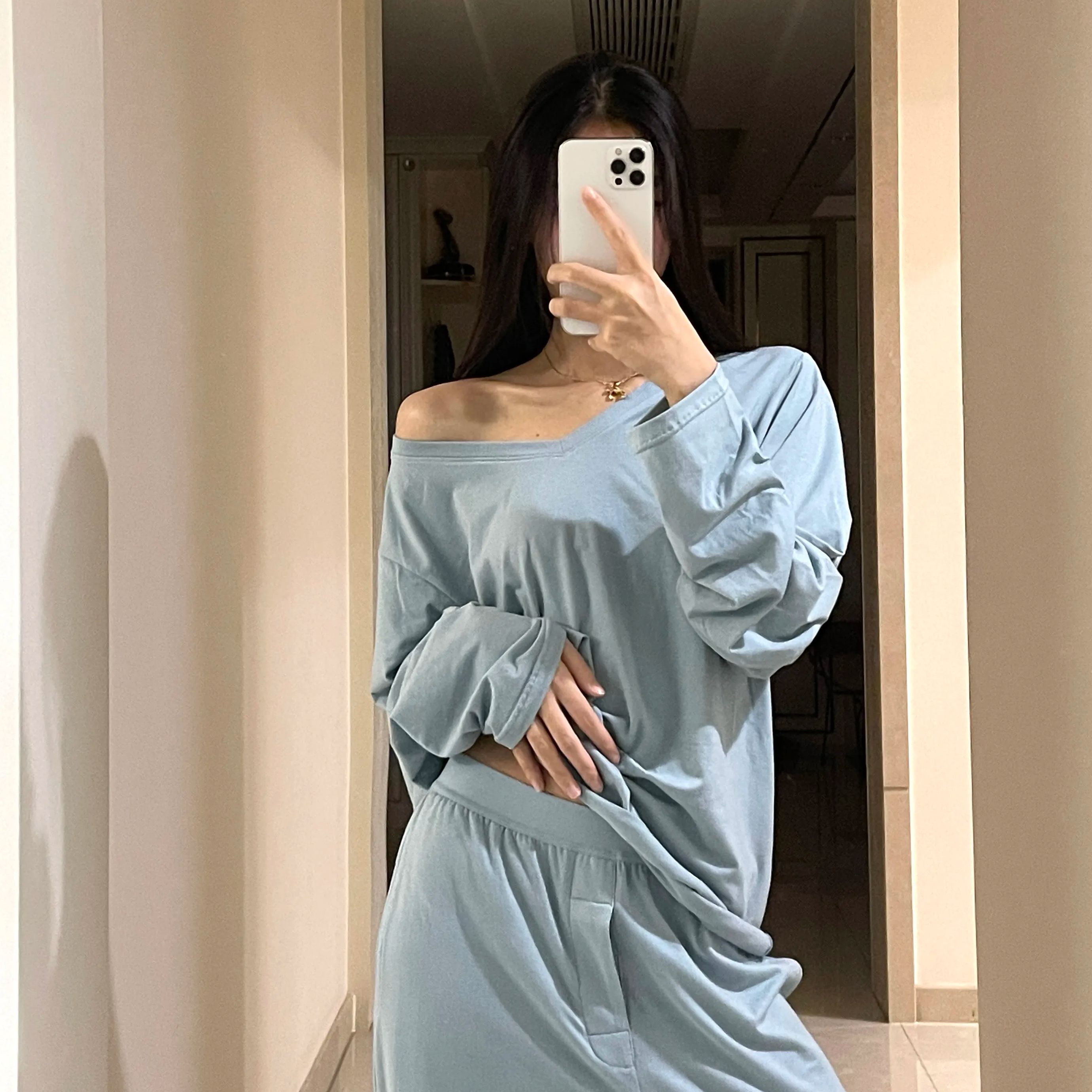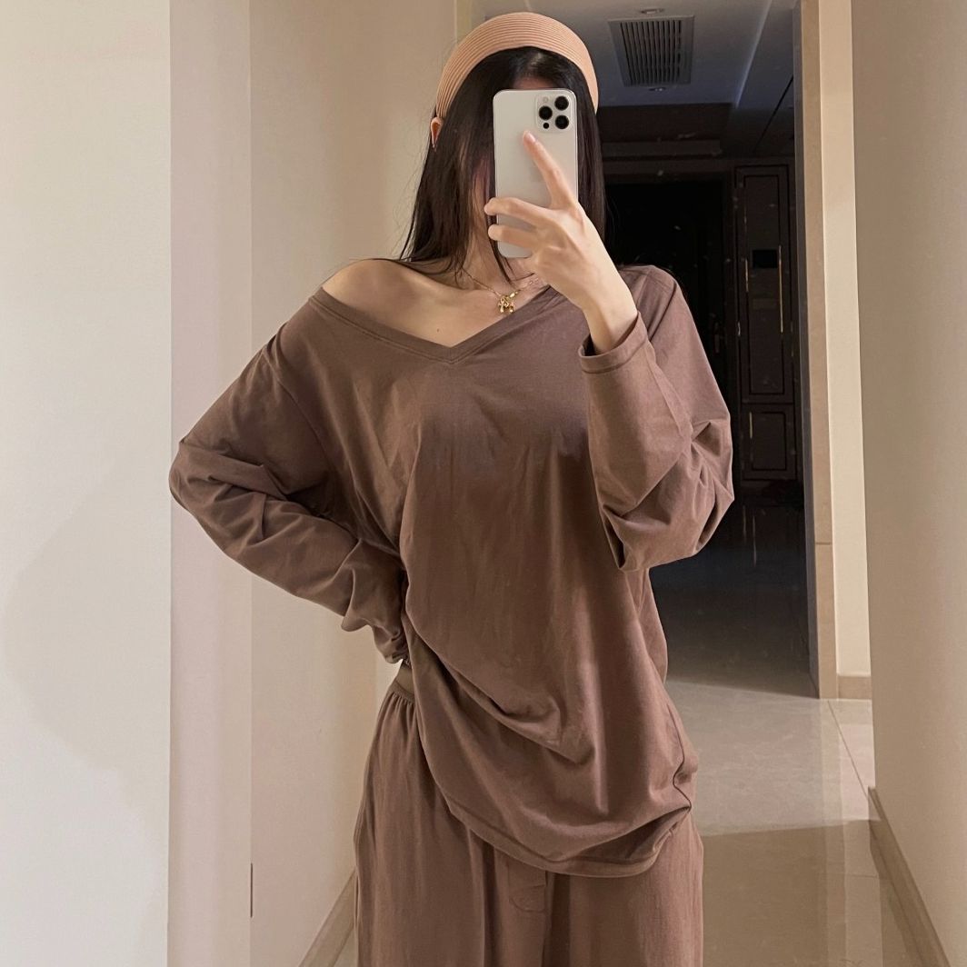 正确版本~Skims Boyfriend同款面料平替V领长裤慵懒舒适莫棉套装