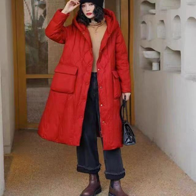 复古气质长款白鸭绒羽绒外套文艺中国风保暖轻便连帽纯色羽绒服女