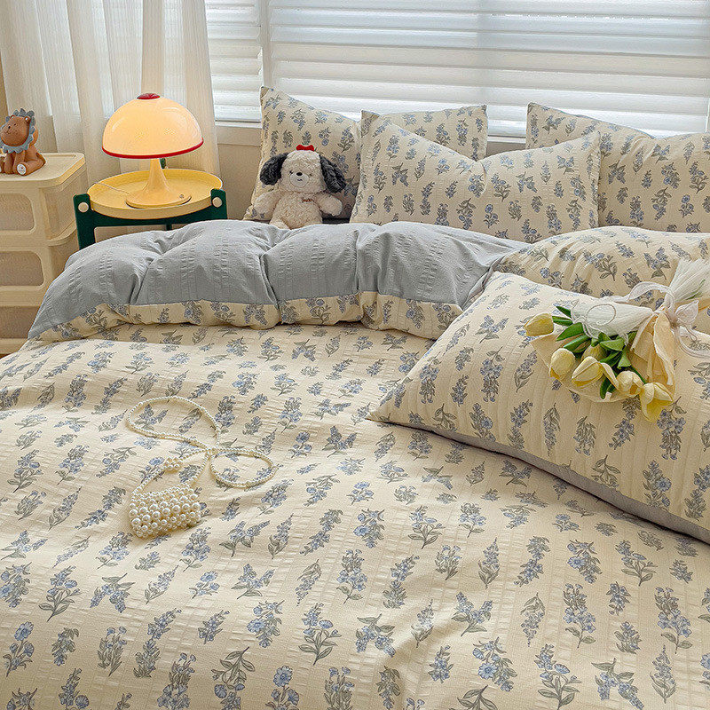 有氧提花棉云纱四件套圆角吊边被套学生宿舍亲肤可水洗床上三件套