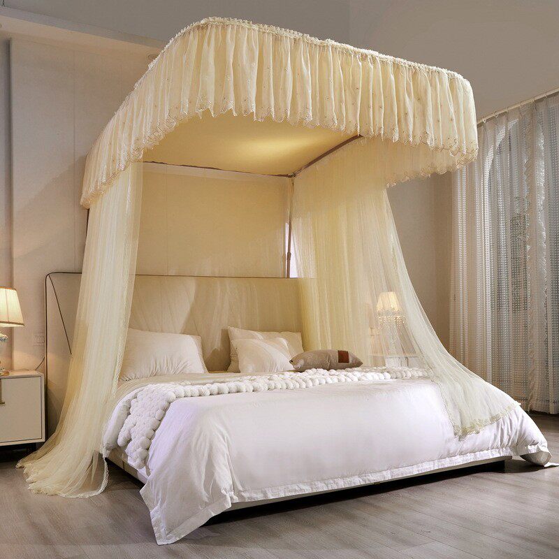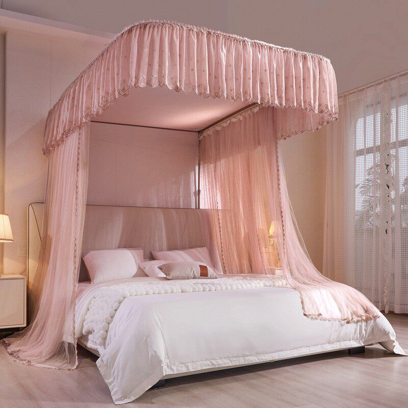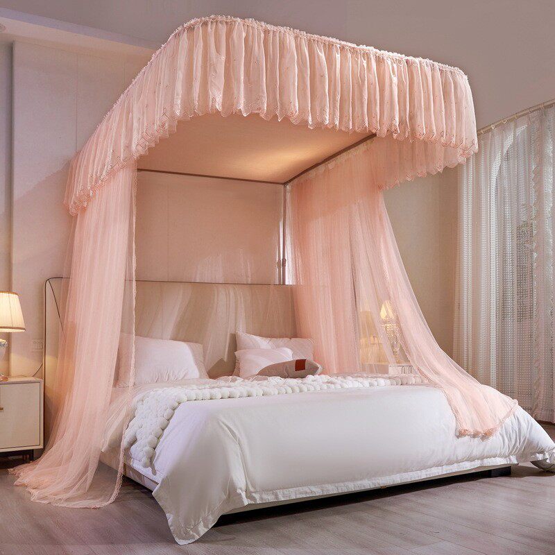 2024新款卧室导轨蚊帐u型轨道落地公主幔纱新型床帘欧式家用蚊帐