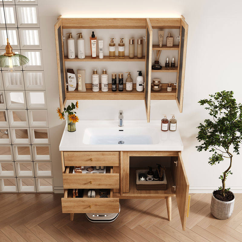 浴室柜组合陶瓷一体盆日式原木风洗手脸盆柜卫浴柜洗漱台