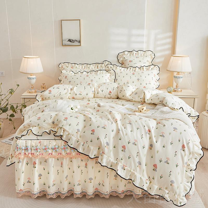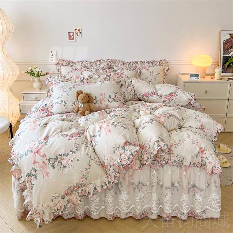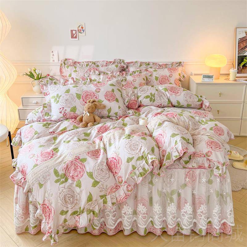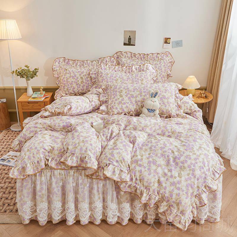 正品春秋纯棉式床裙四件套1.8m床罩全棉韩风版碎花边被套爱公主可