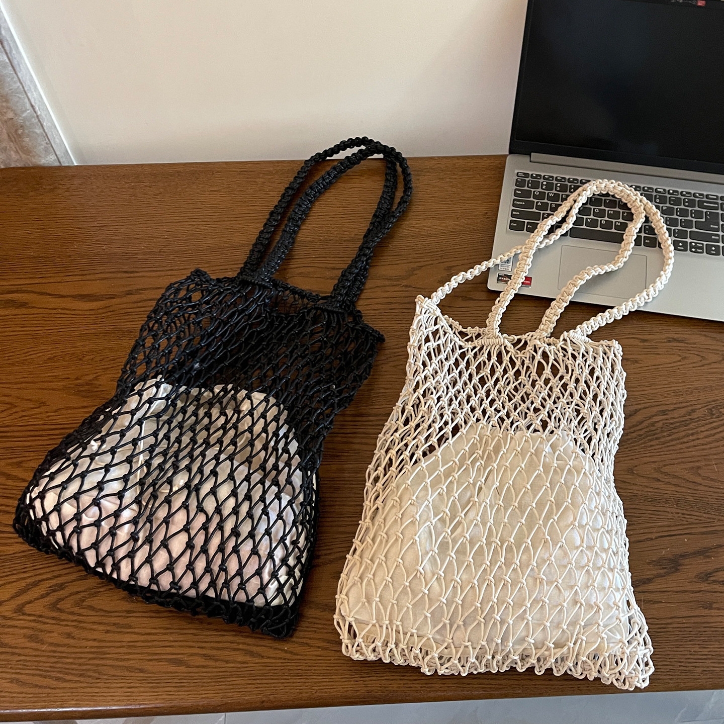 2025新款韩系ins风镂空编织包大容量托特包沙滩度假包编织网兜