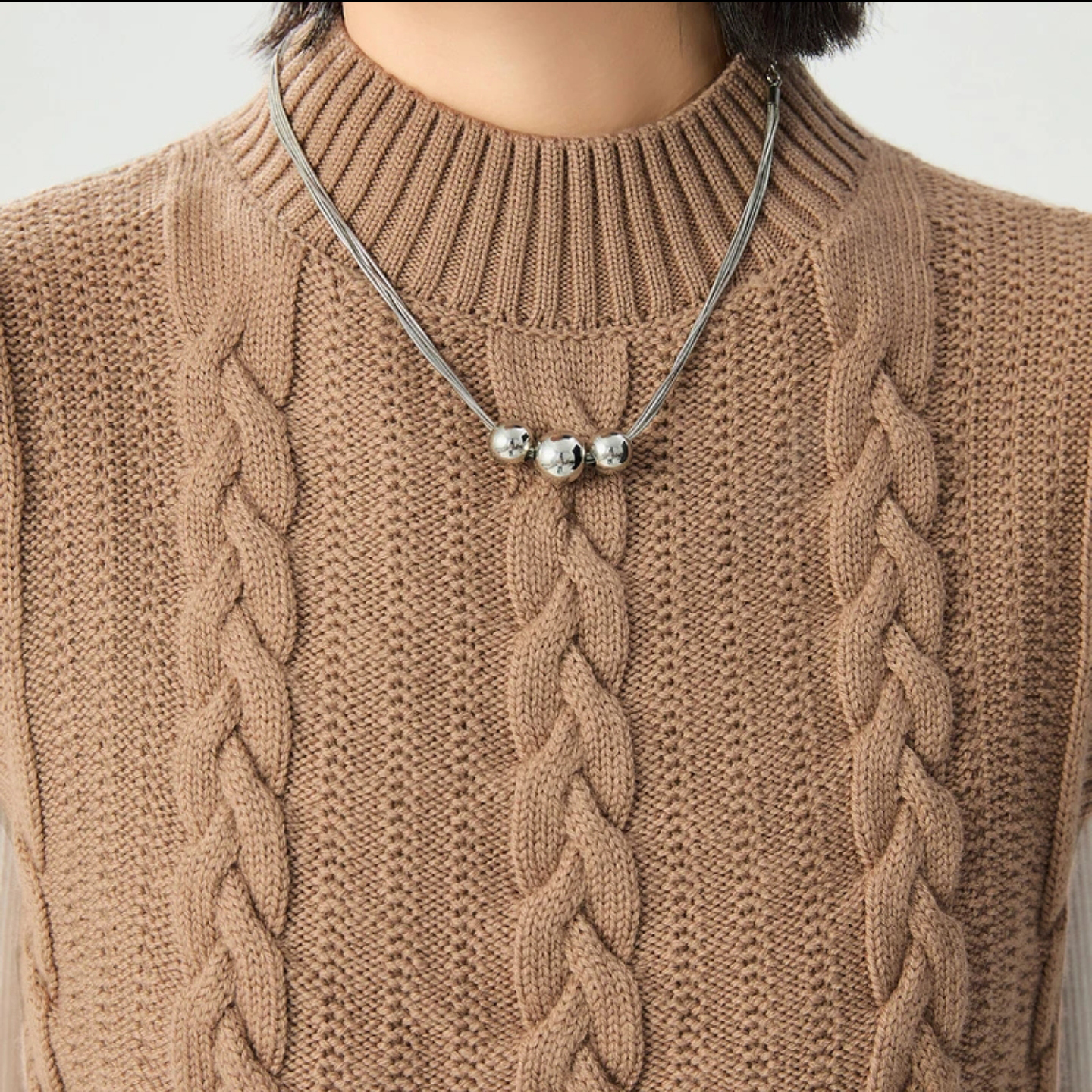 阿玛施2024秋季新款小烟管领羊毛背心针织衫外穿马甲A301153