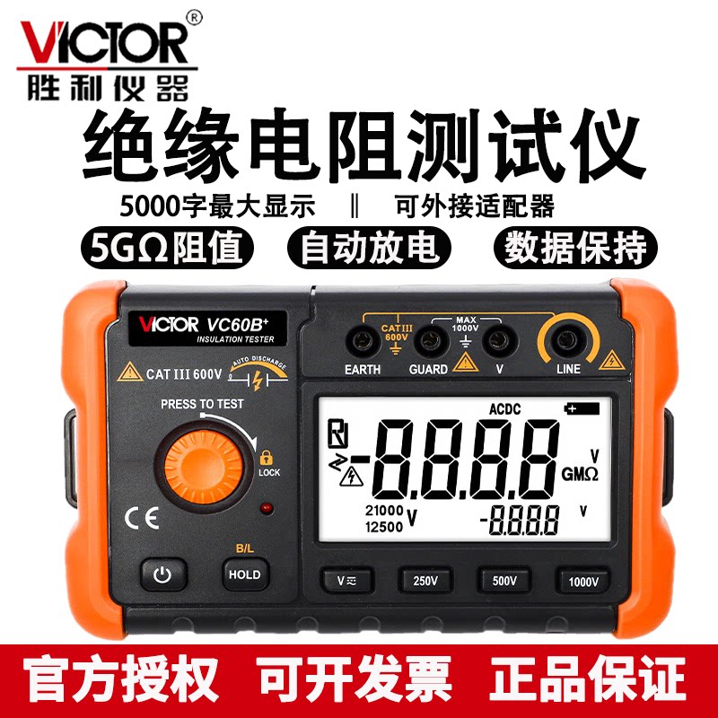 胜利VC60B+数字兆欧表电子摇表绝缘电阻表绝缘电阻测试仪