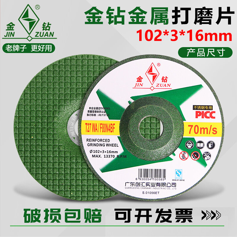 金钻磨光片102×3×16鱼鳞片打磨片手磨机砂轮片不锈钢