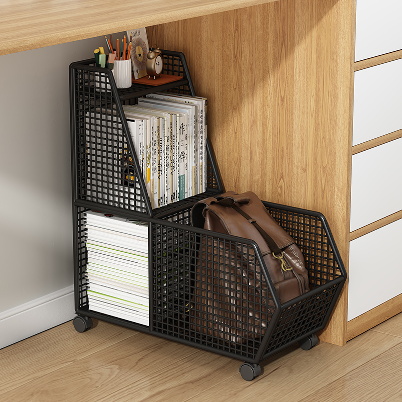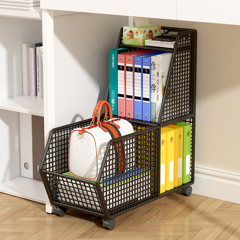 可移动书桌下书架落地置物架书包书本收纳柜儿童办公室带轮小推车