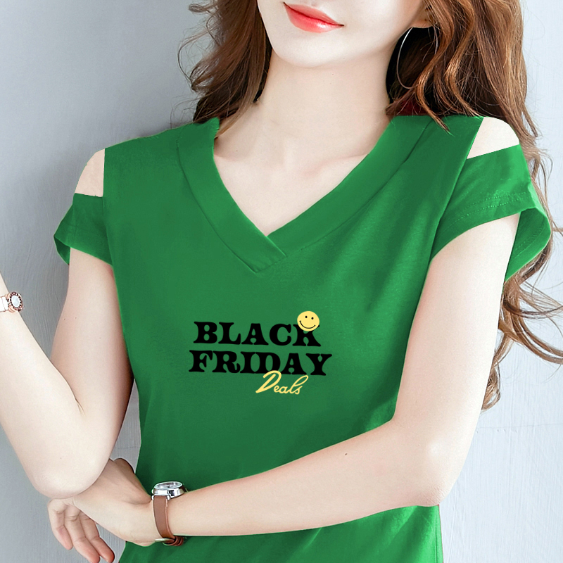 2025新款露肩大码夏装V领短袖t恤女士半袖纯棉一字领上衣服体恤衫