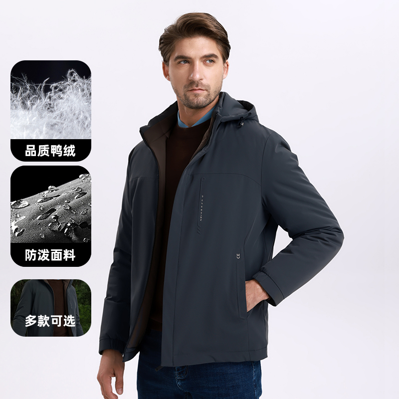 迪仕尼奴冬季新品羽绒服男厚款鸭绒保暖连帽可拆卸百搭中长款外套