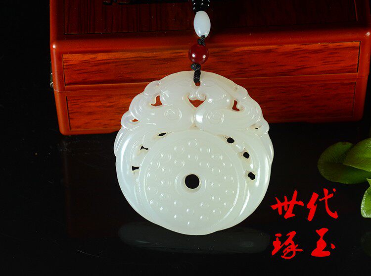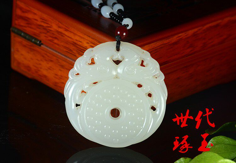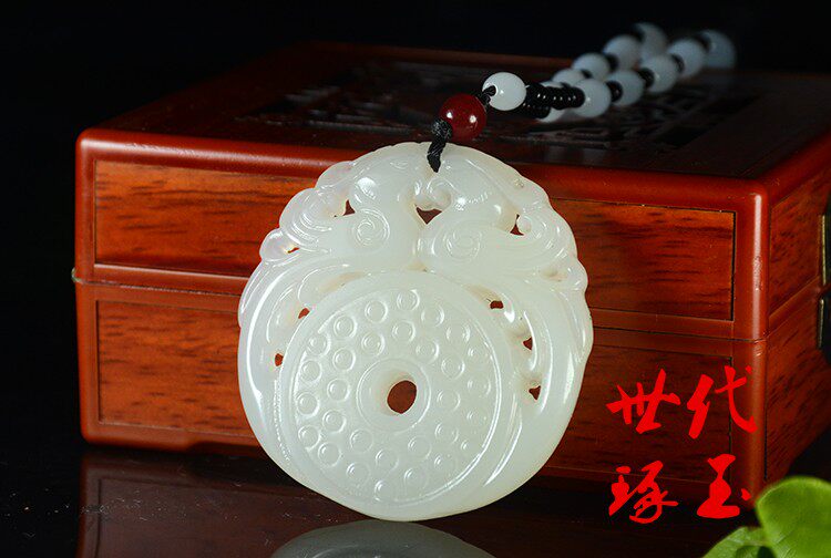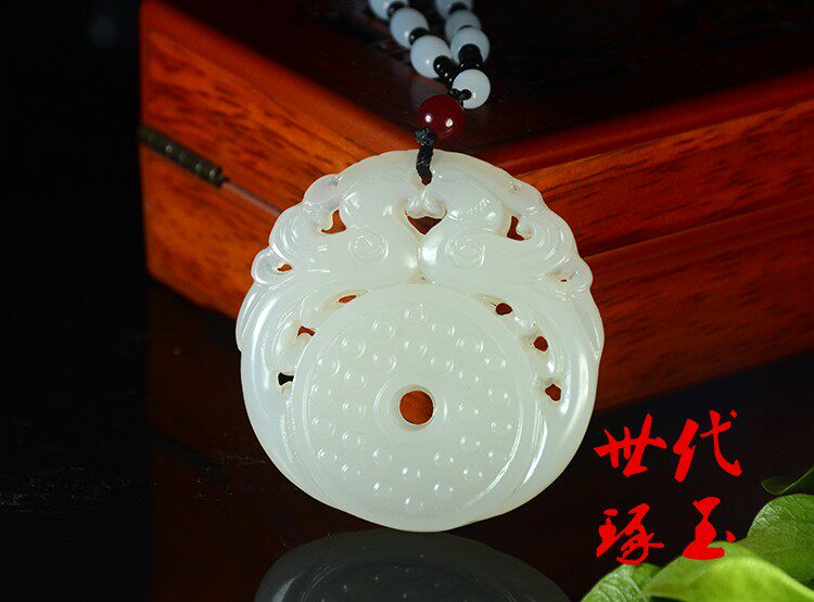 和田玉双面镂空双凤护主挂件白玉龙凤玉佩保平安仿古玉璧吊坠玉坠