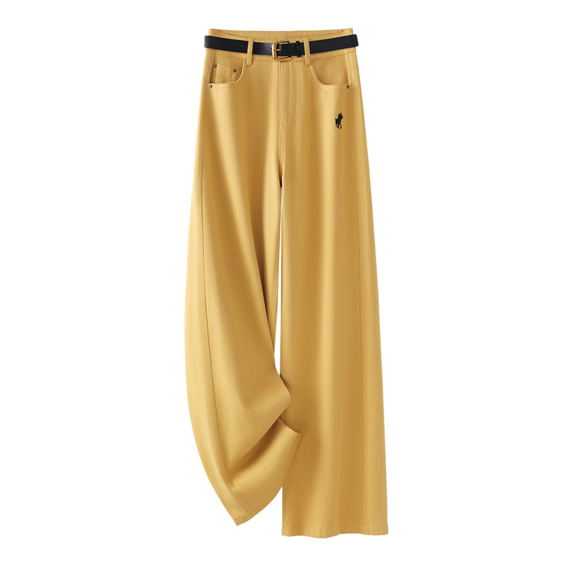 黄色直筒牛仔裤女春秋2025今年流行宽松显瘦拖地裤高腰窄版阔腿裤