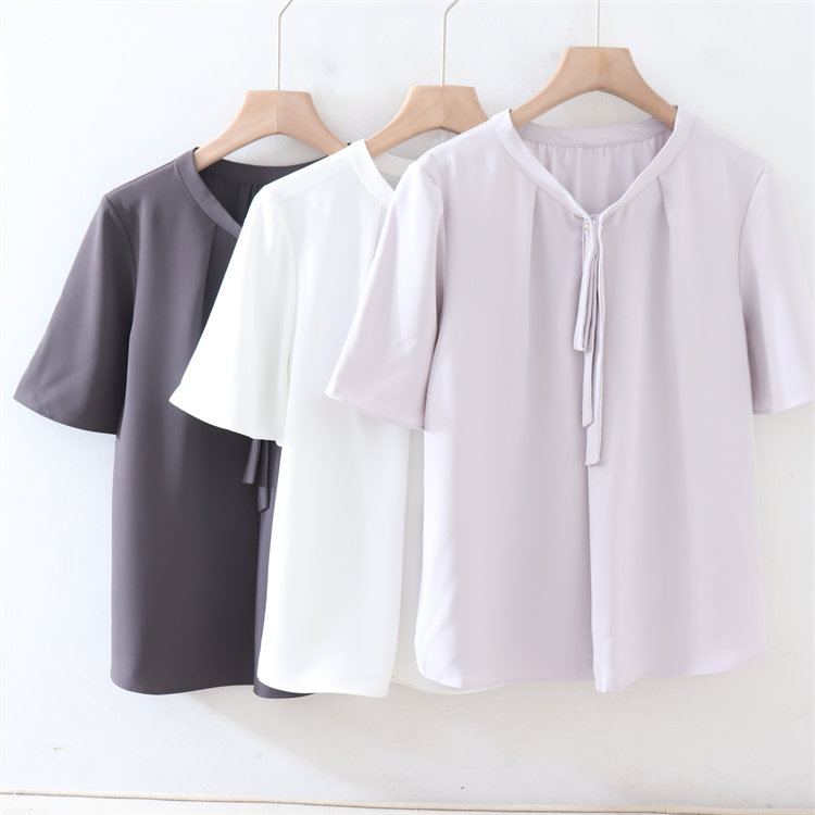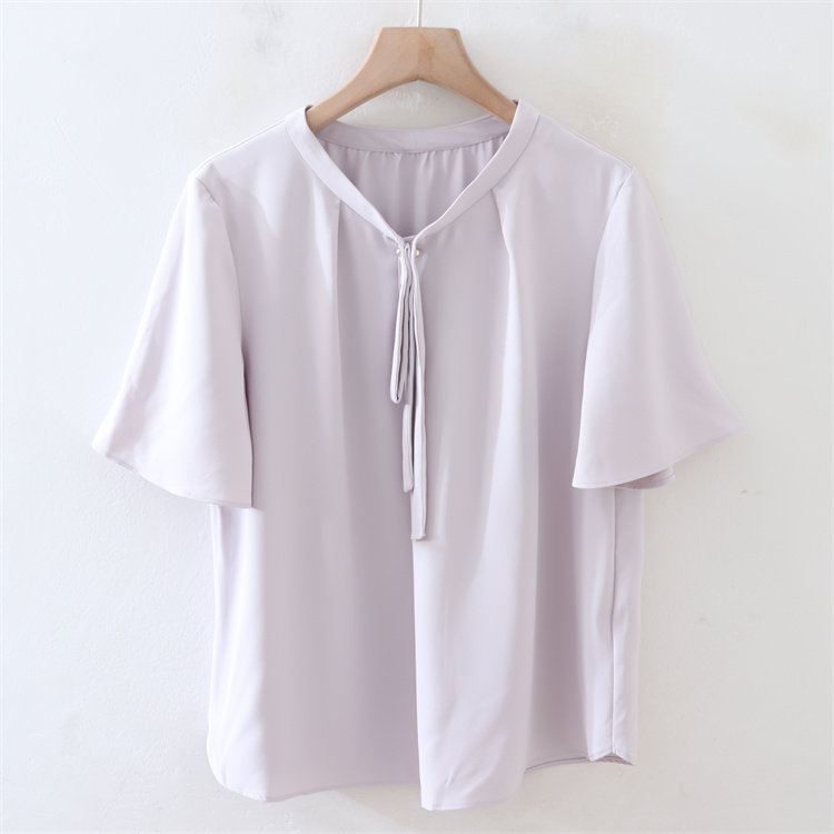 H04008日单新款贵牌大R有领带套头宽松显瘦女纯色气质短袖衬衫