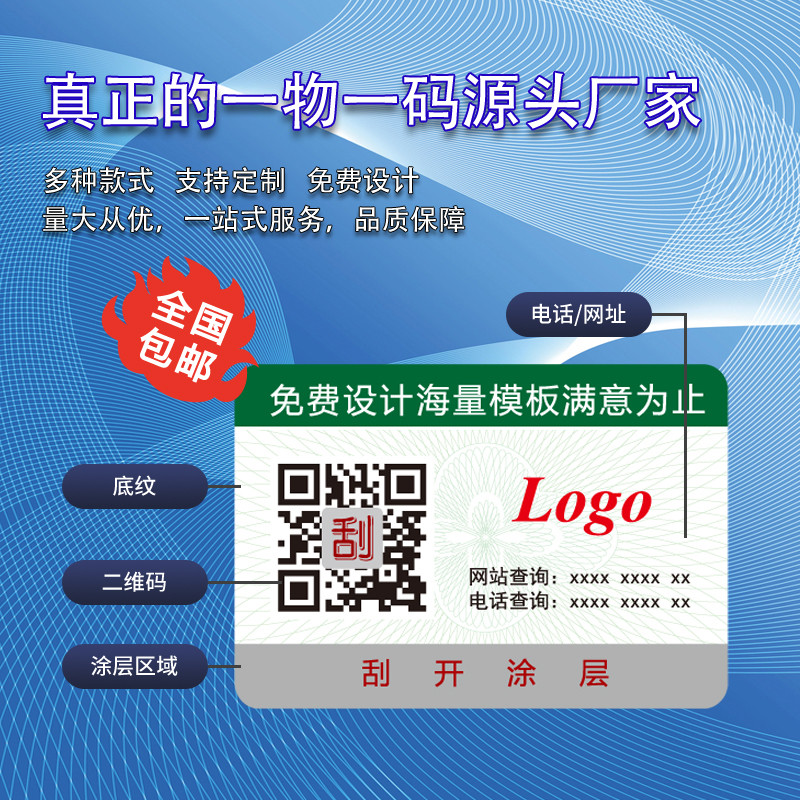 防伪标签贴定制一次性码二维码激光易碎防伪烟酒一物一码标识新款