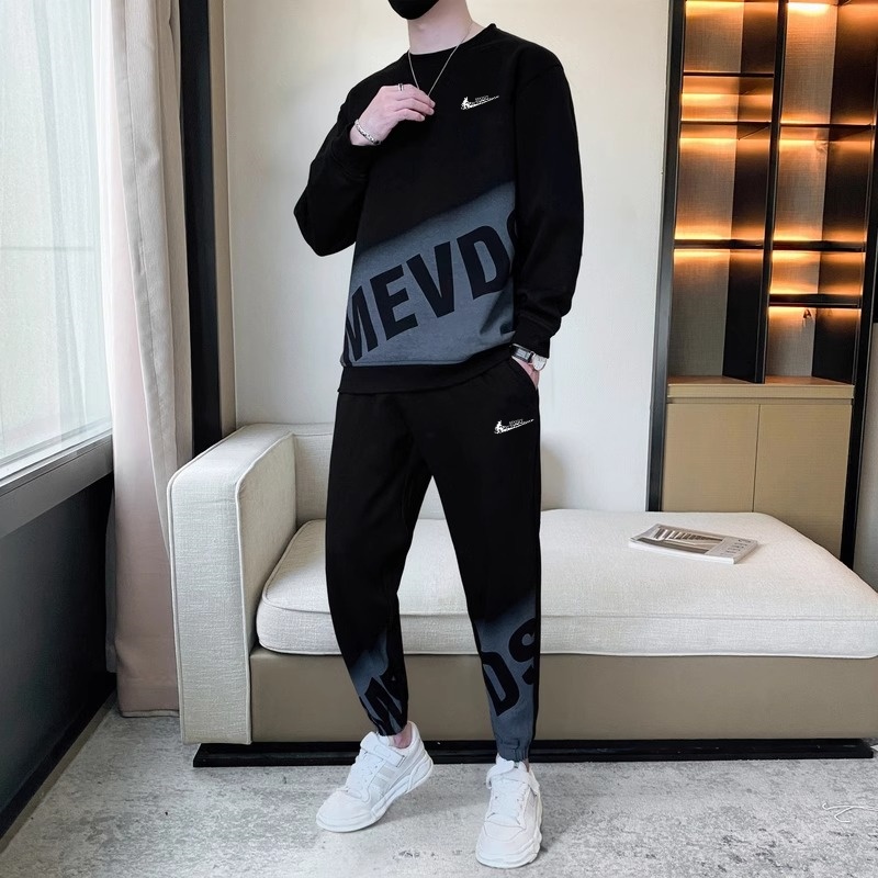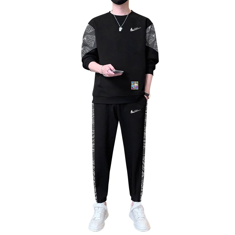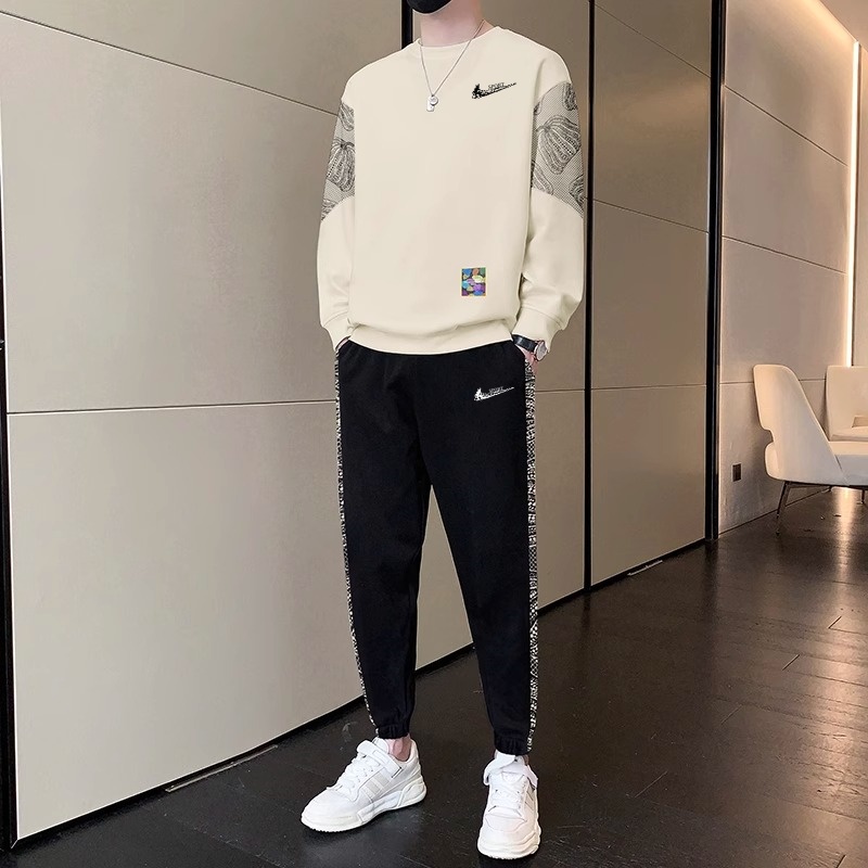 耐克顿休闲运动套装男士秋冬季加绒长袖t恤卫衣长裤一套帅气搭配