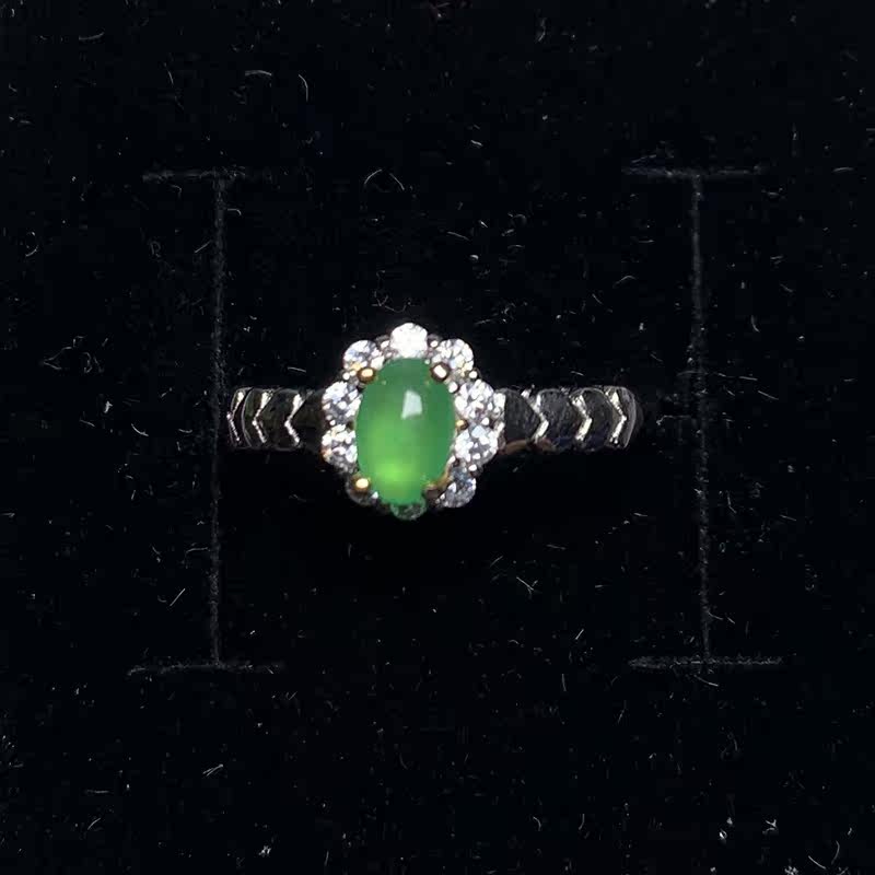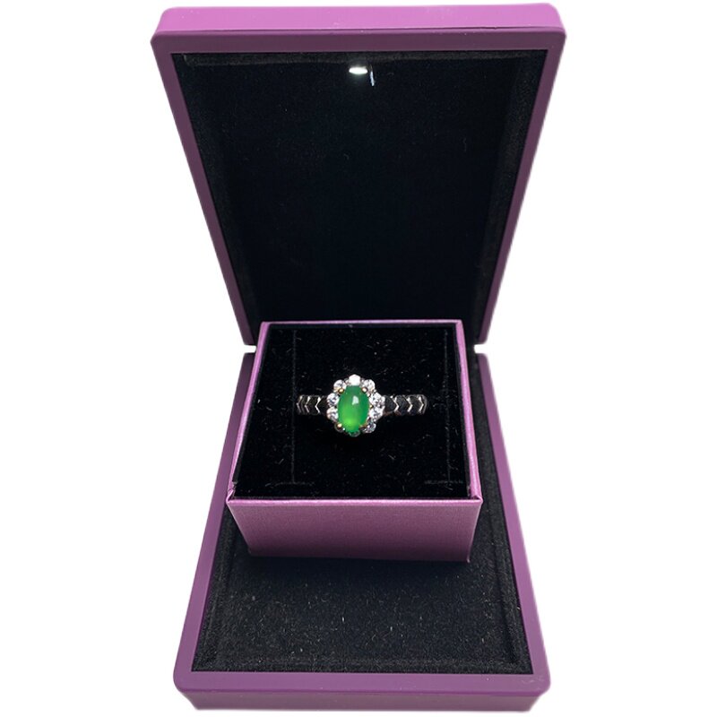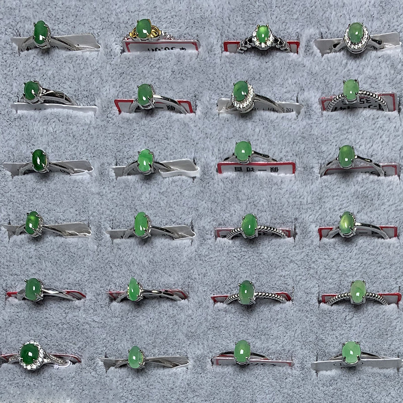 缅甸A货翡翠戒指冰种阳绿蛋面裸石满绿玉戒面925银镶嵌男女款礼品