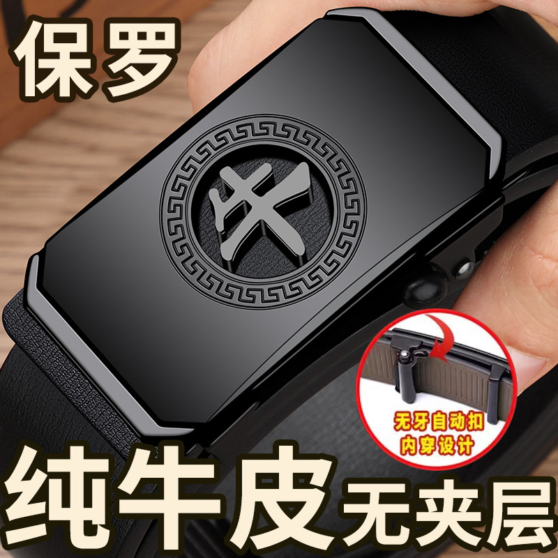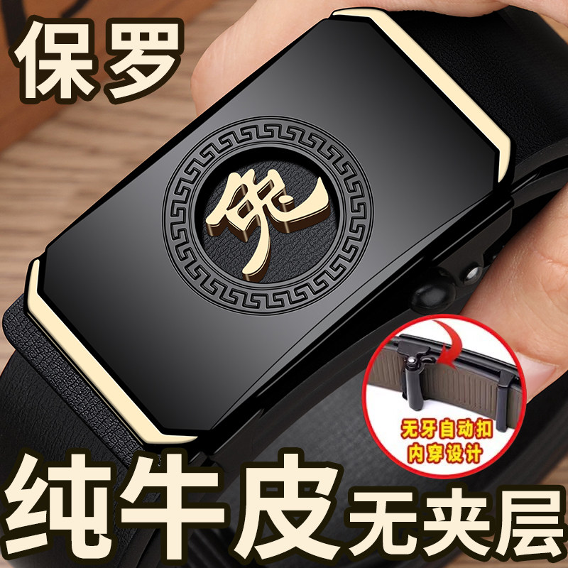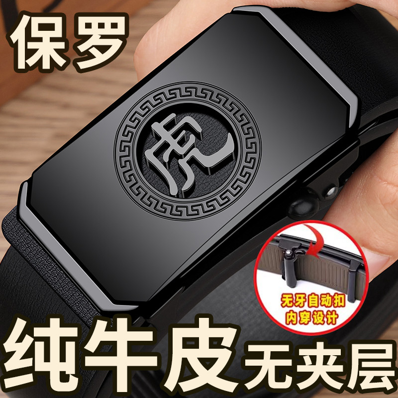 保罗POLO【十二生肖】男士纯牛皮自动扣腰带百搭商务青中老年裤带