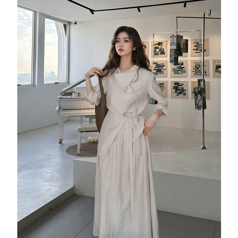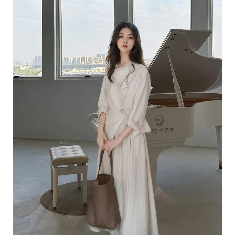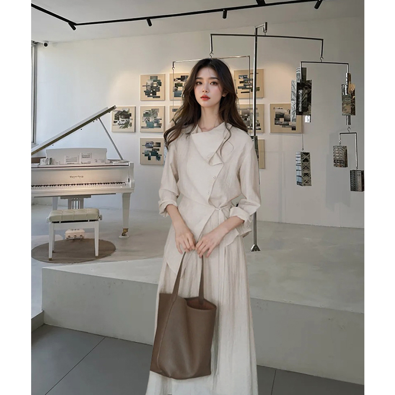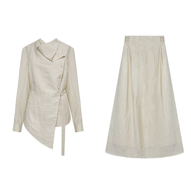 【清悠】新中式知识分子风套装小众设计感长袖上衣+半身裙两件套